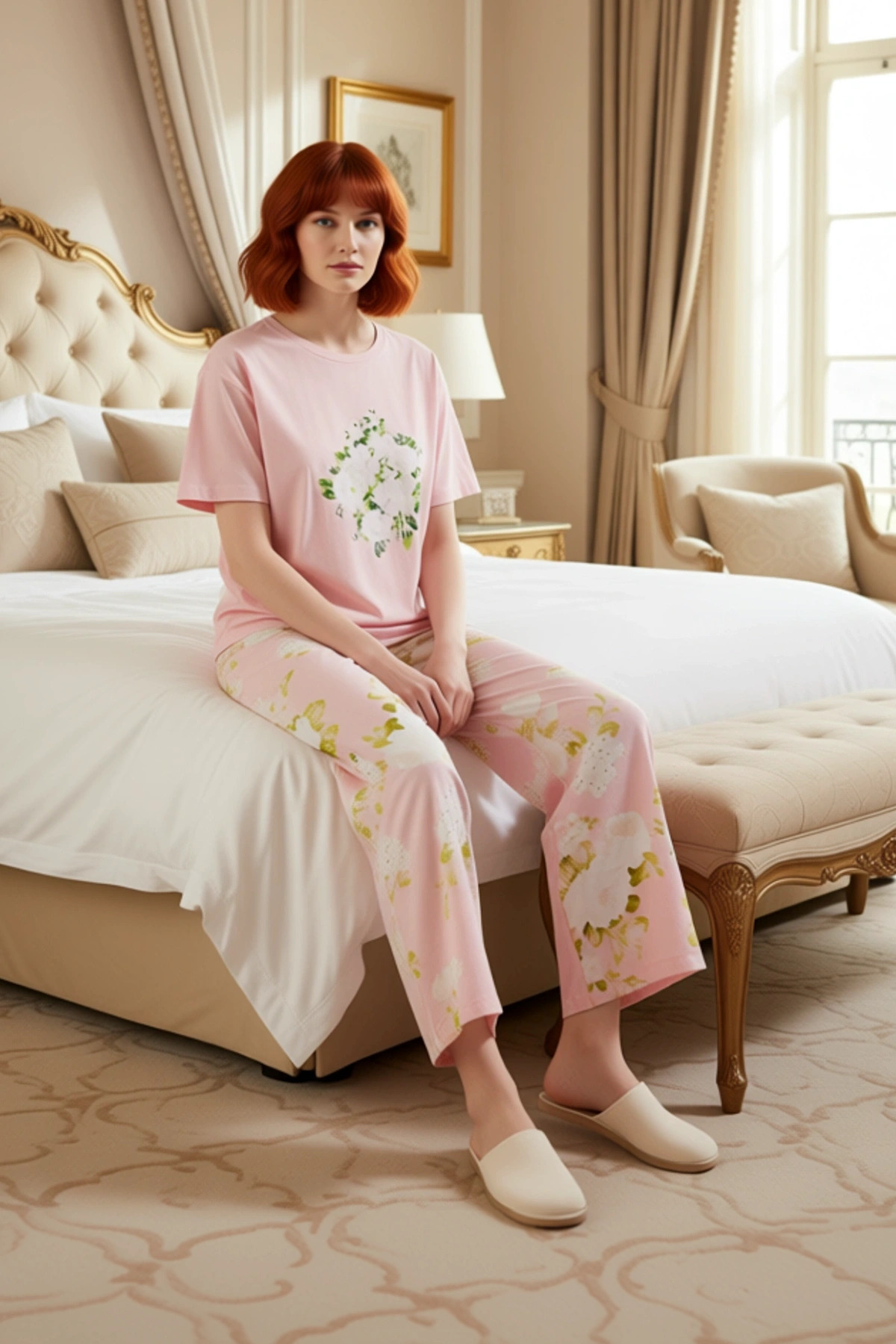 Kadın Çiçek Desenli Pamuklu Pijama Takımı Fonksiyonel Dayanıklı Kaliteli Konforlu Estetik Şık