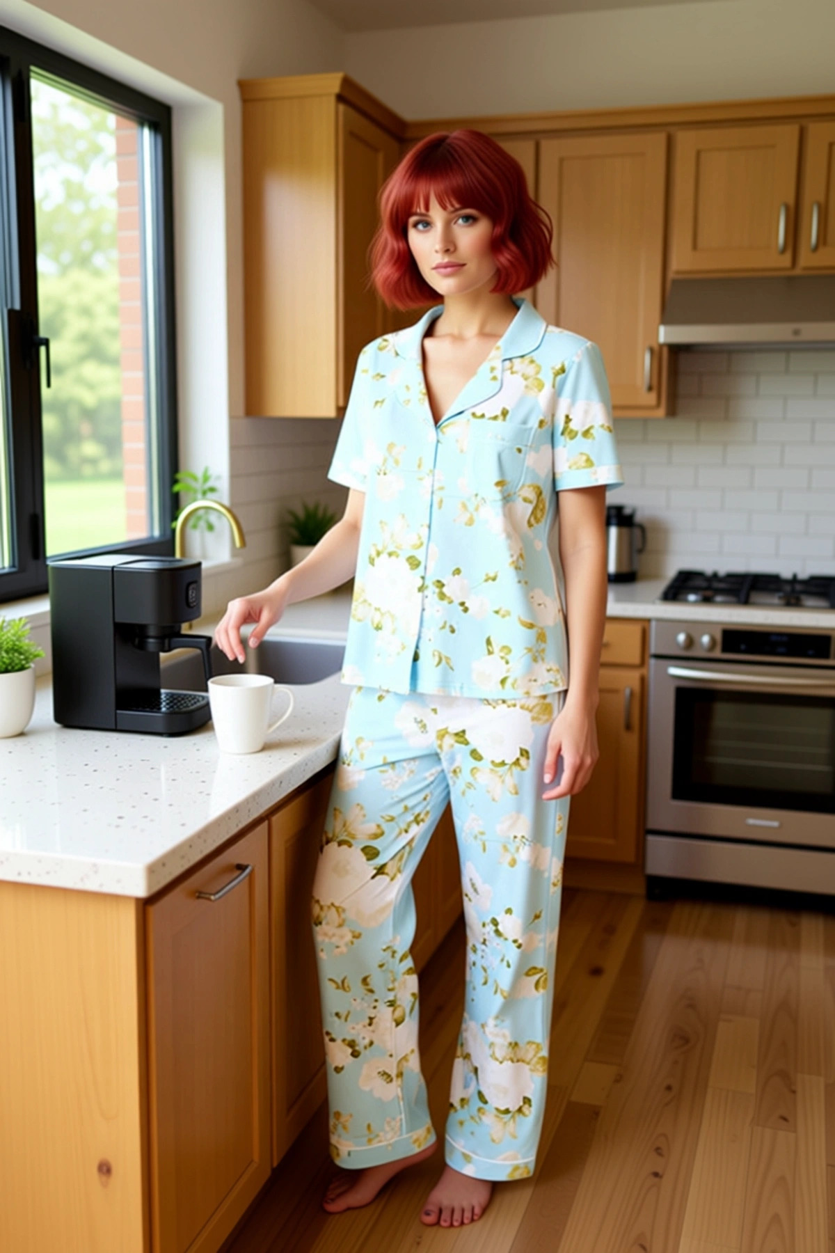 Kadın Çiçekli Ev Giyim Takımı Gömlek Yaka Fonksiyonel Dayanıklı Kaliteli Konforlu Estetik Şık