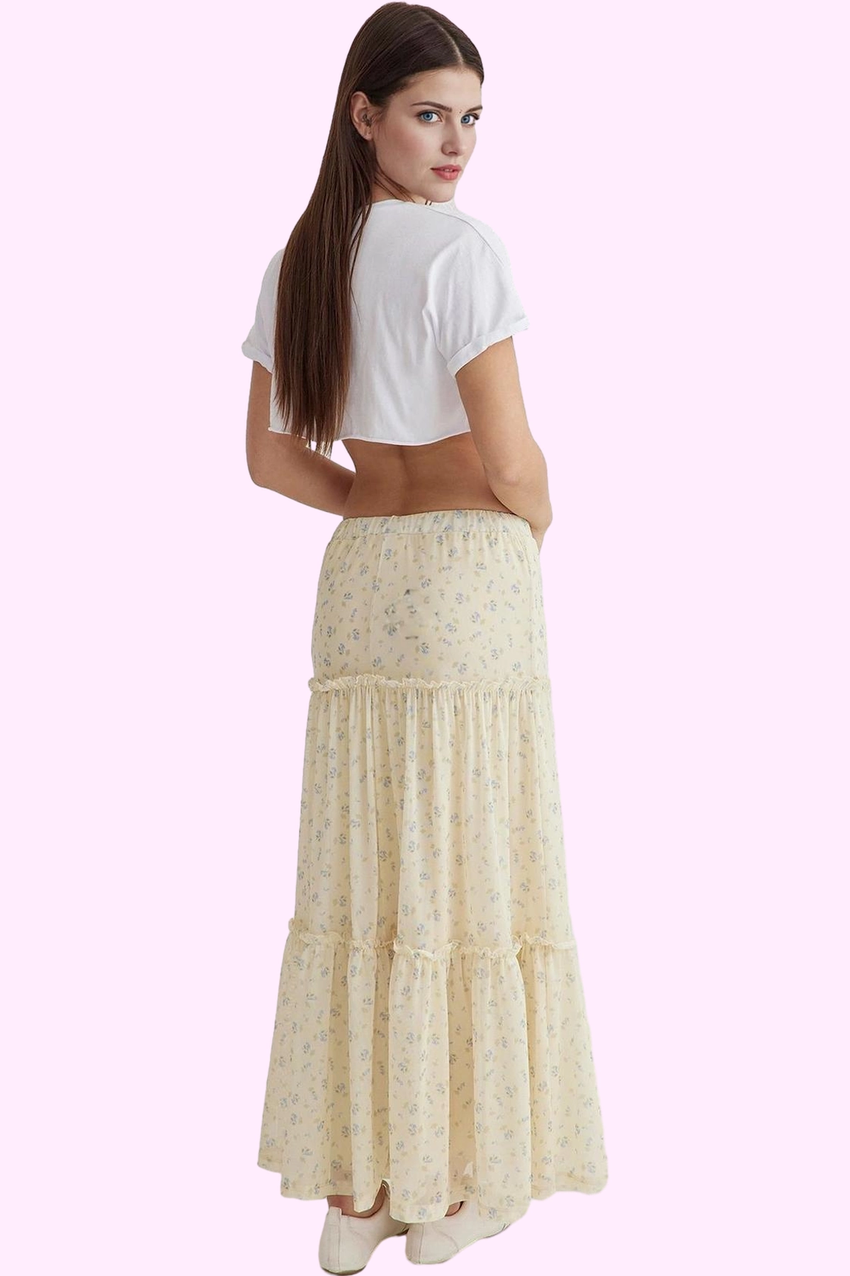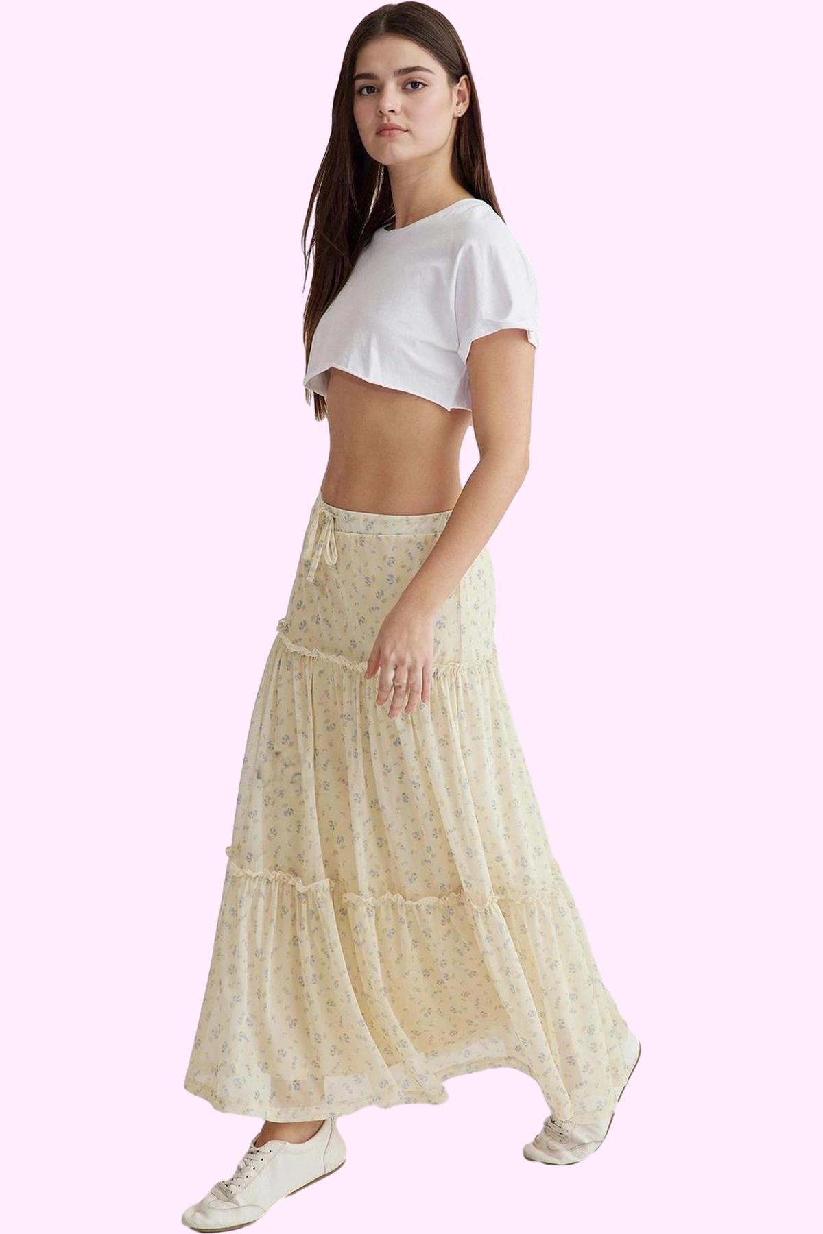 Kadın Çiçekli Tül Etek A line Normal Bel Maxi Boy Günlük Stil Hafta Sonu Dayanıklı Malzeme