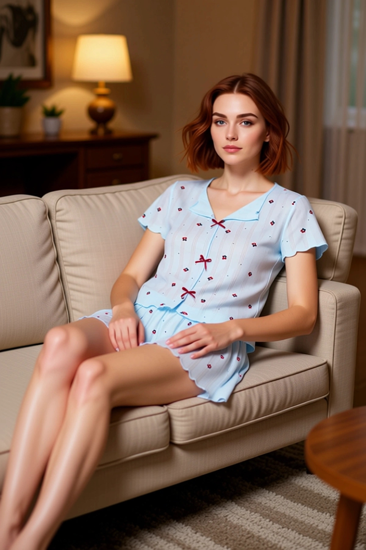 Kadınların evdeki rahatlığını ve şıklığını ön planda tutan bu pijama takımı, %100 pamuk içeriğiyle cildinize dost bir dokunuş sunar. Beyaz zemin üzerine serpiştirilmiş mavi çiçek desenleri ve ince dikey çizgiler, takıma zarif ve ferah bir görünüm kazandırır. Metraj baskı tekniğiyle canlılığını koruyan desenler, uzun süreli kullanımda bile ilk günkü gibi kalır. Regular fit kalıbı, vücut hatlarını nazikçe sararak hareket özgürlüğünüzü kısıtlamaz. Örme kumaşın yumuşaklığı ve nefes alabilirliği, özellikle sıcak günlerde maksimum konfor sağlar. Bu pijama takımı, ev giyiminde hem rahatlığı hem de estetiği bir arada arayan kadınlar için özenle tasarlanmıştır. Takımın V yaka detayı, zarif bir görünüm sunarken, kısa kolları sıcak havalarda serinlik hissi verir. Şortun boru paça kesimi ve normal bel özelliği, gün boyu rahat bir kullanım sunar. Üzerindeki küçük kurdele fiyonkları, takıma sevimli ve feminen bir dokunuş ekler. Kaşkorse dokuma tipi, kumaşın esnekliğini ve dayanıklılığını artırarak uzun ömürlü bir kullanım vaat eder. Cool ve comfort persona ile uyumlu olan bu takım, lounge ve ev ortamları için idealdir. Cildinize nazik davranan yapısı ve şık tasarımı ile kendinizi iyi hissetmenizi sağlar. Yaz mevsiminin vazgeçilmez parçalarından biri olacak bu pijama takımı, hafifliği ve nefes alabilen kumaşıyla serin ve konforlu bir uyku deneyimi sunar. Günlük ev aktiviteleri için de rahatlıkla tercih edilebilir. Bu takımı, açık renkli bir kot şort ve sandaletlerle kombinleyerek şık bir ev stili oluşturabilirsiniz. Ayrıca, yumuşak bir ev ayakkabısı ve ince bir hırka ile tamamlayarak keyifli ev anlarınıza konfor katabilirsiniz. Makinede yıkanabilir olması, bakımını kolaylaştırır.