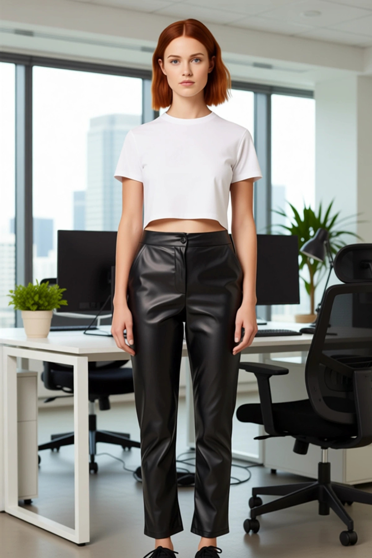 Bu kadın pantolonu, modern ve sofistike bir stil arayanlar için tasarlandı. Cigarette kalıbı, bacak boyunca zarifçe inen ve bilekte hafifçe daralan bir kesim sunar. Yüksek bel özelliği, belinizi vurgulayarak daha uzun ve ince bir silüet yaratır. Düz deseni, suni deri materyalin doğal parlaklığını ve dokusunu ön plana çıkarır. %100 polyesterden üretilen bu pantolon, hem dayanıklılığı hem de şık görünümü bir arada sunar. Günlük kullanım için ideal olan bu pantolon, cool ve rahat bir persona ile öne çıkar. Çift cepli tasarımı, hem fonksiyonel hem de estetik bir detaydır. Bu pantolon, gardırobunuza kolayca entegre edilebilecek çok yönlü bir parçadır. Suni deri dokusu, pantolona lüks bir dokunuş katarken, dokuma kumaş yapısı da kalitesini pekiştirir. Bu ürün, stil sahibi kadınların tercihi olmaya adaydır. Pantolonun cigarette kesimi, klasik bir şıklık sunarken, yüksek bel detayı modern bir yorum katar. Bu kombinasyon, her vücut tipine uyum sağlayabilen ve zarif bir duruş sergileyen bir kesim oluşturur. Suni deri materyali, hem şık bir görünüm sağlar hem de kolay bakım imkanı sunar. Çift cepli tasarım, pantolonun işlevselliğini artırırken, aynı zamanda stilini de tamamlar. Bu pantolon, gün boyu konforlu bir kullanım sunmak üzere özenle tasarlanmıştır. Kaliteli dikişleri ve materyali, uzun süreli kullanıma olanak tanır. Pantolonun genel kalıbı, hareket özgürlüğünü kısıtlamadan vücut hatlarını nazikçe sarar, bu da onu hem şık hem de rahat bir seçenek haline getirir. Bu pantolon, özellikle kış aylarında tercih edilebilir. Suni deri yapısı, soğuk havaya karşı bir miktar koruma sağlar. Kombin önerisi olarak, bu pantolonu şık bir triko kazak ve kısa botlarla tamamlayarak zarif bir kış kombini oluşturabilirsiniz. Ayrıca, basic bir sweatshirt ve sneakerlarla daha spor bir görünüm elde edebilirsiniz. Ayakkabı seçiminde, topuklu çizmeler, zarif loaferlar veya şık sneakerlar ile mükemmel uyum sağlar. Bakımı için, pantolonu nemli bir bezle nazikçe silerek temizlemeniz yeterlidir. Sert kimyasallardan ve makinede yıkamadan kaçınılmalıdır. Bu pantolon, her kadının gardırobunda bulunması gereken zamansız bir parçadır.