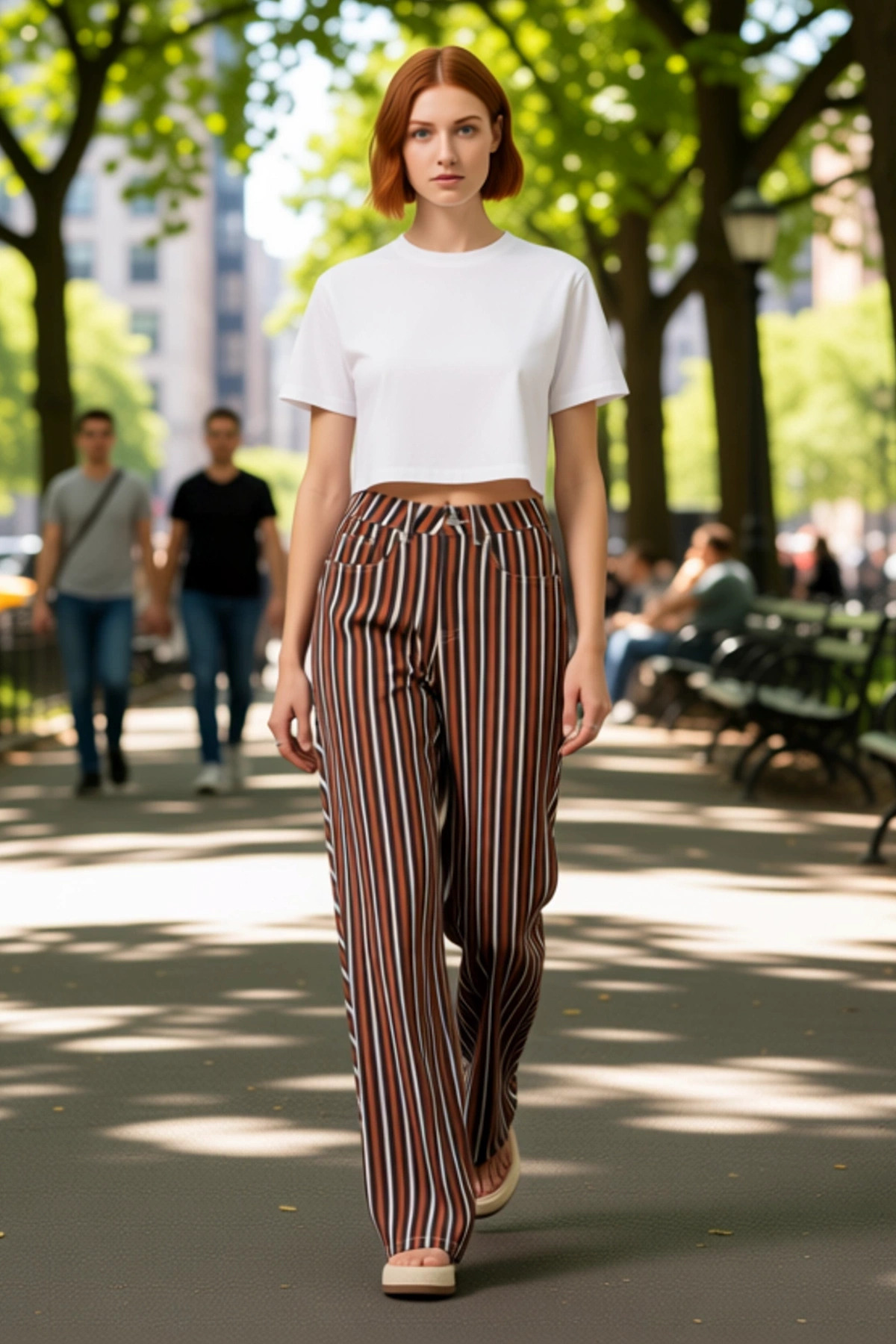 Bu kadın jean pantolonu, kahverengi, beyaz ve siyah dikey çizgili deseniyle stilinize enerjik bir dokunuş katıyor. Normal bel ve bol paça kesimi, rahat bir kullanım sunarken, %100 pamuklu denim kumaşı gün boyu konfor sağlıyor. Rigid dokuma tipi, pantolonun formunu korumasına yardımcı olurken, uzun ömürlü bir kullanım vadediyor. Bu pantolon, hem günlük şıklığınızı tamamlamak hem de stil sahibi bir duruş sergilemek için ideal bir parça. Modaya duyarlı ve özgünlüğünü yansıtmak isteyen kadınlar için tasarlanmış bu parça, gardırobunuzun vazgeçilmez bir parçası olacak. Çizgili deseni, farklı üstlerle kolayca uyum sağlayarak çok yönlü bir kullanım sunuyor. Pantolonun normal bel yüksekliği, rahat bir oturma sağlarken, bol kesim ve geniş paça detayı modern ve rahat bir silüet oluşturuyor. Bu tasarım, hareket özgürlüğünüzü kısıtlamadan gün boyu konforlu bir deneyim yaşamanızı sağlıyor. %100 pamuklu kumaşı, cildinize dost ve nefes alabilir bir yapıya sahip, bu da onu her koşulda tercih edilebilir kılıyor. Rigid denim dokusu, pantolonun zamansız bir stil sunmasına katkıda bulunuyor ve zamanla daha da güzelleşmesini sağlıyor. Bu pantolon, hem rahatlığı hem de şıklığı bir arada arayan kadınlar için mükemmel bir seçenek. Günlük kullanım için ideal olan bu parça, aynı zamanda stil sahibi bir duruş sergilemenize yardımcı oluyor. Bu çizgili jean pantolon, her mevsim için uygun bir seçenektir. İlkbahar ve sonbaharda tişörtler, kazaklar ve spor ceketlerle, yaz aylarında ise basic tişörtler ve sandaletlerle harika bir uyum yakalar. Kış aylarında ise kalın triko kazaklar ve botlarla kombinlenerek sıcak ve şık bir görünüm elde edilebilir. Beyaz bir basic tişört, gri bir sweatshirt veya ekru bir gömlek ile tamamlayarak casual bir görünüm elde edebilirsiniz. Beyaz spor ayakkabılar, postal botlar veya kalın tabanlı ayakkabılar ile rahatlıkla kombinleyebilirsiniz. Pantolonun bakımı için, düşük sıcaklıkta ve benzer renklerle birlikte yıkamanız önerilir.
