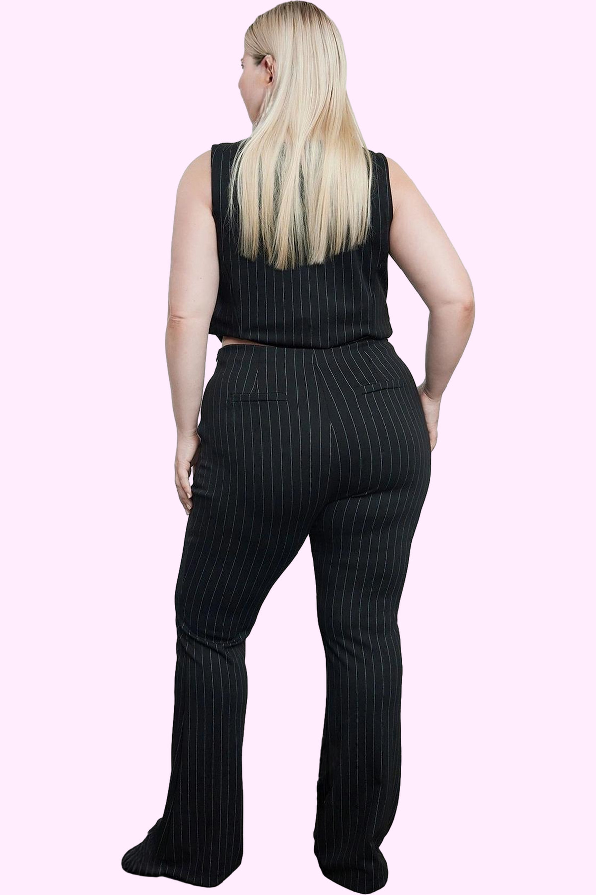 Kadın Çizgili Geniş Paça Pantolon Yüksek Bel Regular Kesim Rahat Günlük Yaz Aylarının Vazgeçilmezi