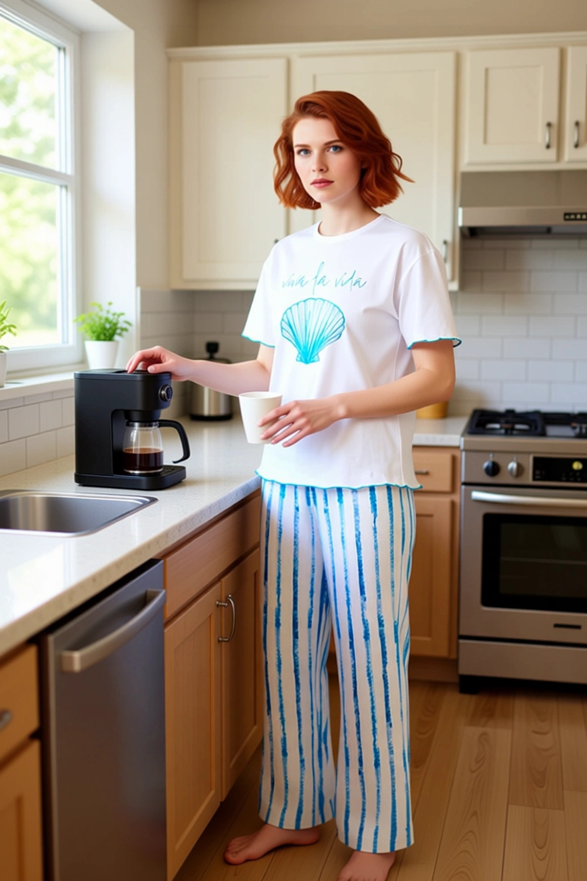 Kadın Çizgili Viskon Pijama Takımı Deniz Temalı Baskı Fonksiyonel Dayanıklı Kaliteli Rahat
