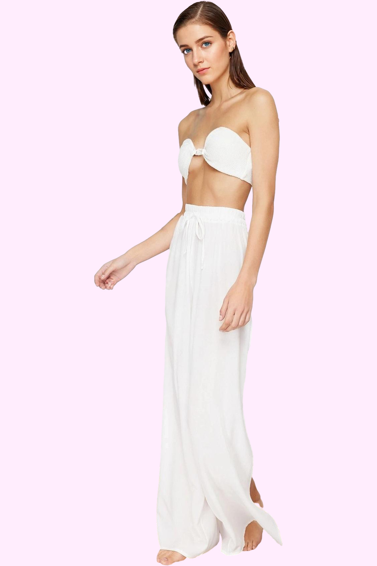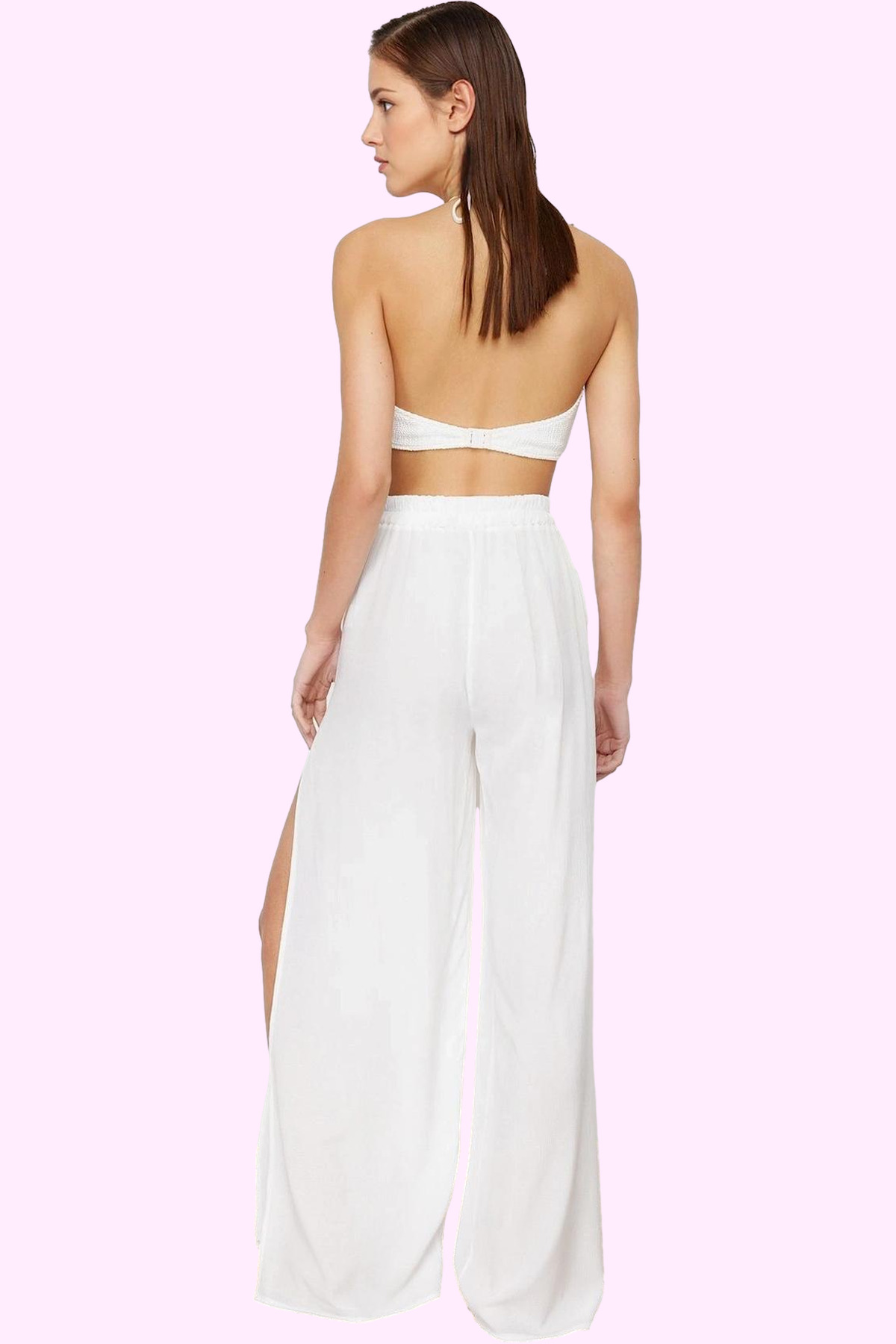 Kadın Crinkle Dokuma Plaj Pantolonu Yüksek Bel Geniş Paça Rahat ve Şık Tasarım Günlük Kullanım