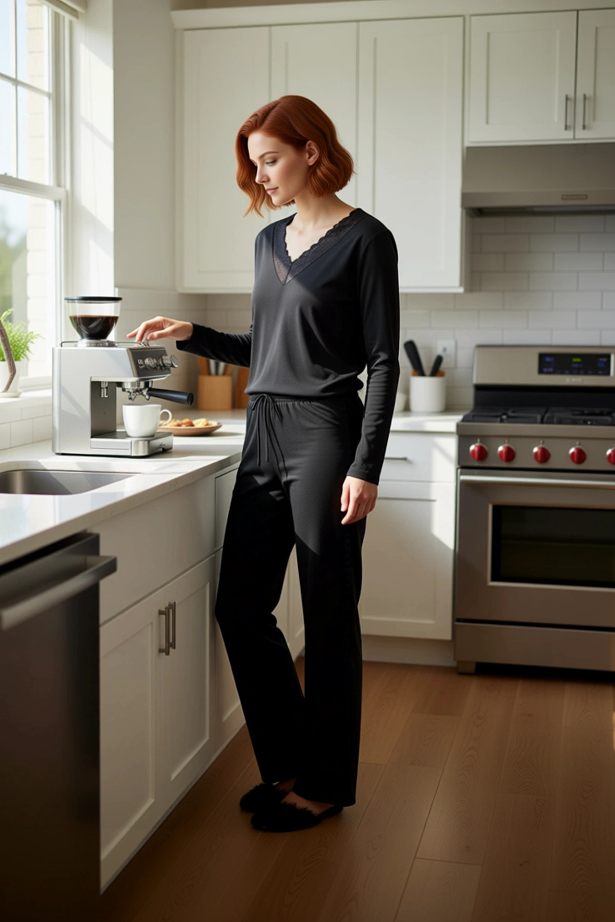 Bu şık pijama takımı, %100 pamuk materyali ile maksimum konfor ve nefes alabilirlik sunar. Düz siyah rengi, zamansız bir şıklık katarken, zarif dantel detayları feminen bir dokunuş ekler. V yaka ve uzun kollu tasarımı, klasik bir görünüm sunar. Regular kalıbı ve boru paça pantolonu ile rahat bir kullanım sağlar. Beldeki bağcık detayı, kişiye özel bir uyum imkanı sunar. Örme kumaş dokusu, yumuşaklığı ve dayanıklılığı ile öne çıkar. Bu pijama takımı, evde geçirdiğiniz zamanı daha keyifli hale getirmek için özenle tasarlanmıştır. Solid teknikle üretilmiş olması, renginin canlılığını ve kumaşın dokusunun korunmasını sağlar. Bu ürün, ev giyiminde rahatlığın ve şıklığın yeni adresi olacak. Takımın V yaka kesimi, zarif bir dekolte sunarken, uzun kollu yapısı soğuk havalarda ekstra sıcaklık sağlar. Regular kalıbı, her vücut tipine uyum sağlayarak rahat hareket etmenize olanak tanır. Üst ve alt parçanın bir arada sunulduğu bu takım, özellikle evde dinlenirken veya lounge aktiviteleri sırasında maksimum konfor sunmak üzere tasarlanmıştır. Kumaşın yumuşaklığı ve esnekliği, uyku sırasında bile rahatsızlık hissi yaratmaz. Dantel detaylarının özenle işlenmesi, ürüne sofistike bir hava katarak sıradan bir pijama takımından çok daha fazlasını sunar. Bu ürün, evde geçirdiğiniz zamanı daha keyifli hale getirmek için özenle üretilmiştir. Kış mevsimi için ideal olan bu pijama takımı, soğuk günlerde sizi sıcak tutacaktır. Evde rahat bir gün geçirmek için yumuşak terlikler ve bir sabahlık ile kombinleyebilirsiniz. Dışarıda ise, rahat bir jean pantolon ve spor ayakkabı ile şık bir günlük kombin oluşturabilirsiniz. Bu takımı uzun yıllar boyunca ilk günkü gibi kullanabilmek için düşük sıcaklıkta ve benzer renklerle yıkamanız önerilir. Nazik yıkama programları, kumaşın ömrünü uzatacaktır.