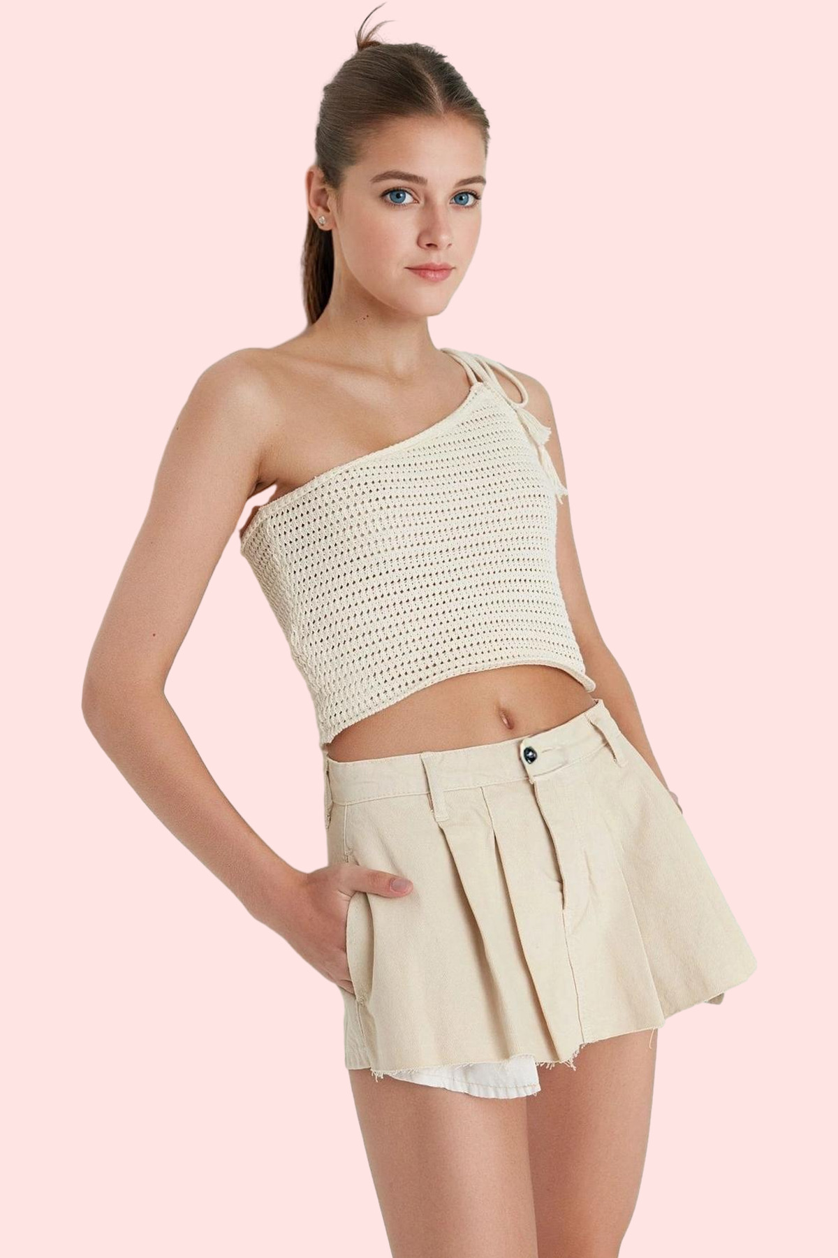 Rahatlığı ve şıklığı bir arada arayan kadınlar için ideal bir seçim olan Ekru Denim Şort Etek ile tanışın! %100 pamuktan üretilen bu şort etek, yumuşak dokusu ve nefes alan yapısıyla gün boyu konfor sağlar. Pileli tasarımı ve düşük bel kesimiyle modern bir görünüm sunarken, kısa boyu ile yaz aylarında serin kalmanıza yardımcı olur. Günlük yaşamınızda rahatlıkla kullanabileceğiniz bu şort etek, farklı kombinlerle tarzınızı yansıtabileceğiniz çok yönlü bir parçadır.
