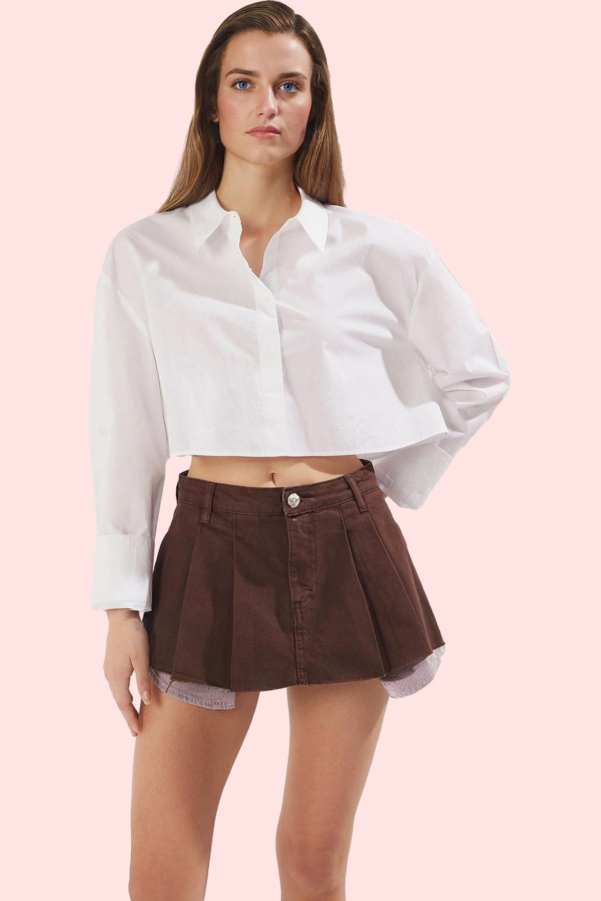 Denim kumaşın dayanıklılığı ve şık ekru rengi, bu şort eteği her mevsim kullanabileceğiniz bir parça haline getiriyor. Pileli detaylar, eteğe hareket katarken aynı zamanda feminen bir hava da ekliyor. Geniş paça tasarımı ise rahatlığı ön planda tutuyor. Düşük bel kesimi ise modern bir görünüm kazandırıyor.