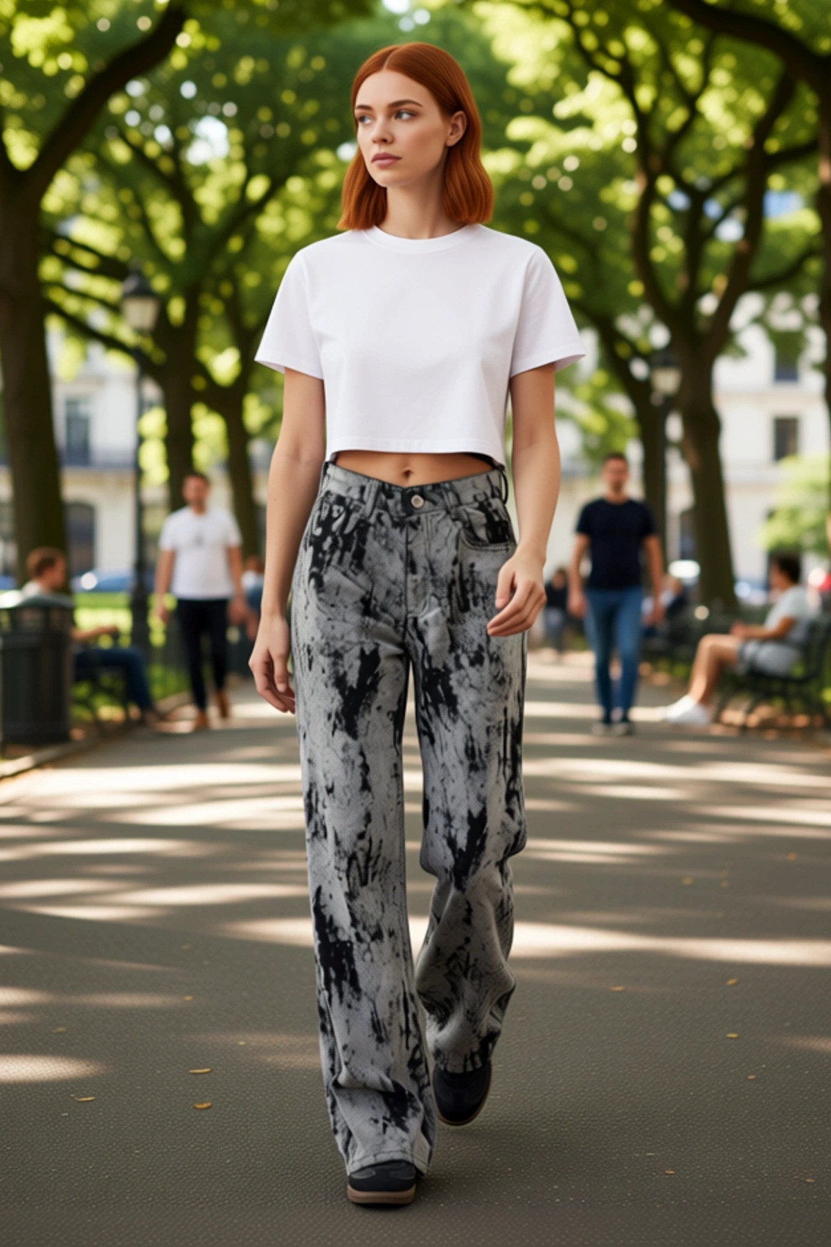 Bu kadın denim pantolon, cesur ve özgün bir tasarımla stilinizi bir üst seviyeye taşıyacak. Yüksek bel ve geniş paça kesimi, modern bir siluet oluştururken, gri ve siyahın çarpıcı flok baskısı her adımda dikkat çekecek. Süet benzeri dokusu, pantolona lüks bir his katarken, %100 pamuk içeriği gün boyu süren bir konfor ve nefes alabilirlik sağlar. Bu jean, hem rahatlığı hem de tarzı bir araya getirerek casual kombinleriniz için mükemmel bir temel oluşturur. Benzersiz deseni, her kadının kendi stilini yansıtmasına olanak tanır. Pantolonun tasarımında öne çıkan özellikler, yüksek bel kesimi, genişleyen paçaları ve özenle işlenmiş flok baskısıdır. Bu detaylar, hem vücudu güzelce sararak şekillendirir hem de hareket özgürlüğü sunar. Yüksek bel, beli daha ince gösterirken, geniş paçalar modern ve rahat bir duruş sergiler. Süet görünümlü baskı, pantolona sofistike bir dokunuş ekler ve onu sıradan denimlerden ayırır. Kumaşın %100 pamuk olması, cildinize nazik davranmasını ve gün boyunca ferah hissetmenizi sağlar. Bu pantolon, şık ve rahat bir görünüm arayan her kadın için idealdir. Bu desenli wide leg jean, her mevsimde kullanıma uygundur. Bahar ve yaz aylarında hafif bir tişört ve sandaletlerle, kış aylarında ise kalın bir kazak ve botlarla kombinleyebilirsiniz. Siyah bir body, basic beyaz bir gömlek veya deri ceket ile tamamlayarak şık bir görünüm elde edebilirsiniz. Ayakkabı olarak sneakerlar, botlar veya platform ayakkabılar tercih edilebilir. Pantolonun uzun ömürlü olması için ters çevrilerek ve soğuk suyla yıkanması tavsiye edilir.