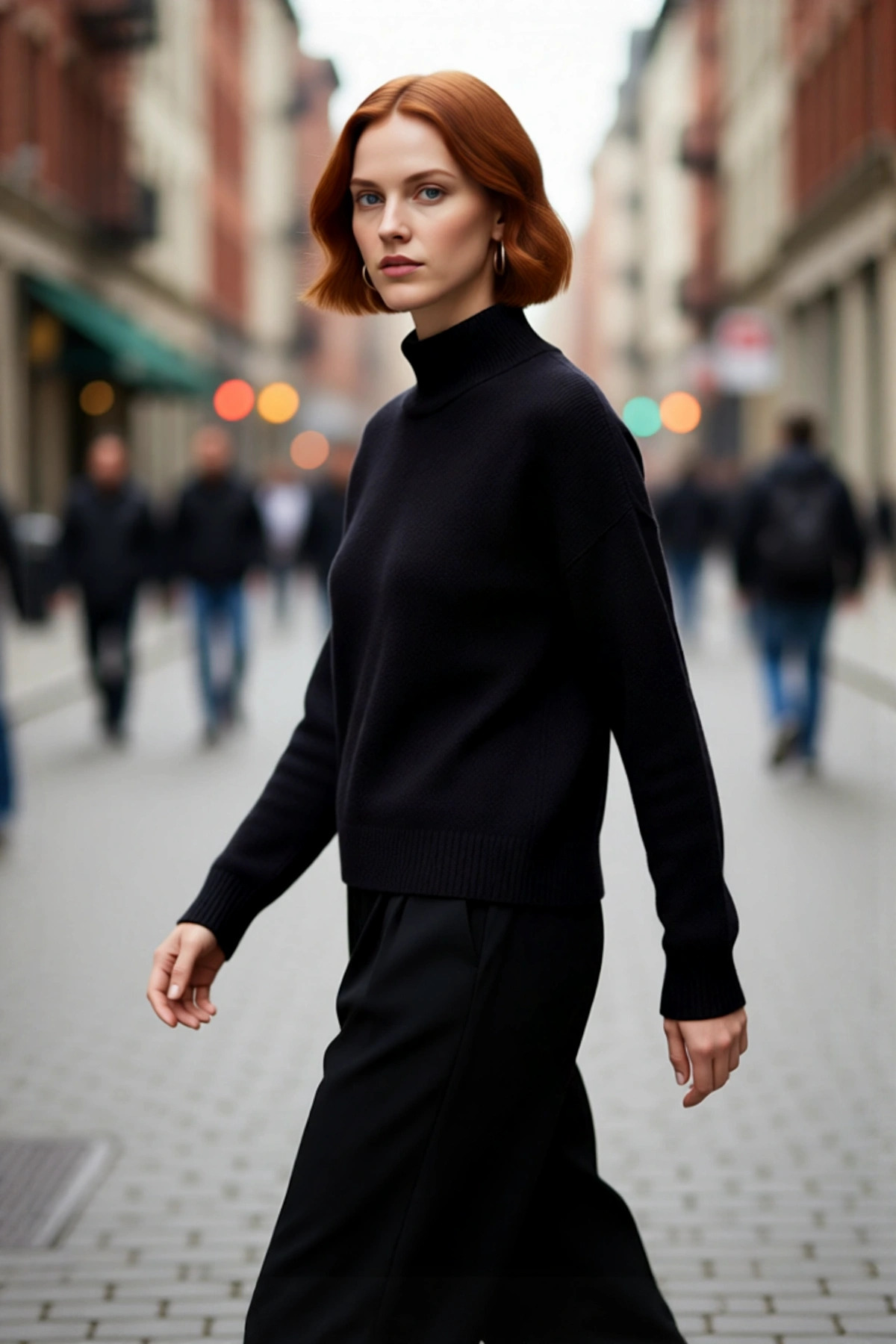 Kadın Dik Yaka Oversize Kalın Triko Kazak Düşük Kol Detaylarıyla Kış Aylarının Favori Parçası