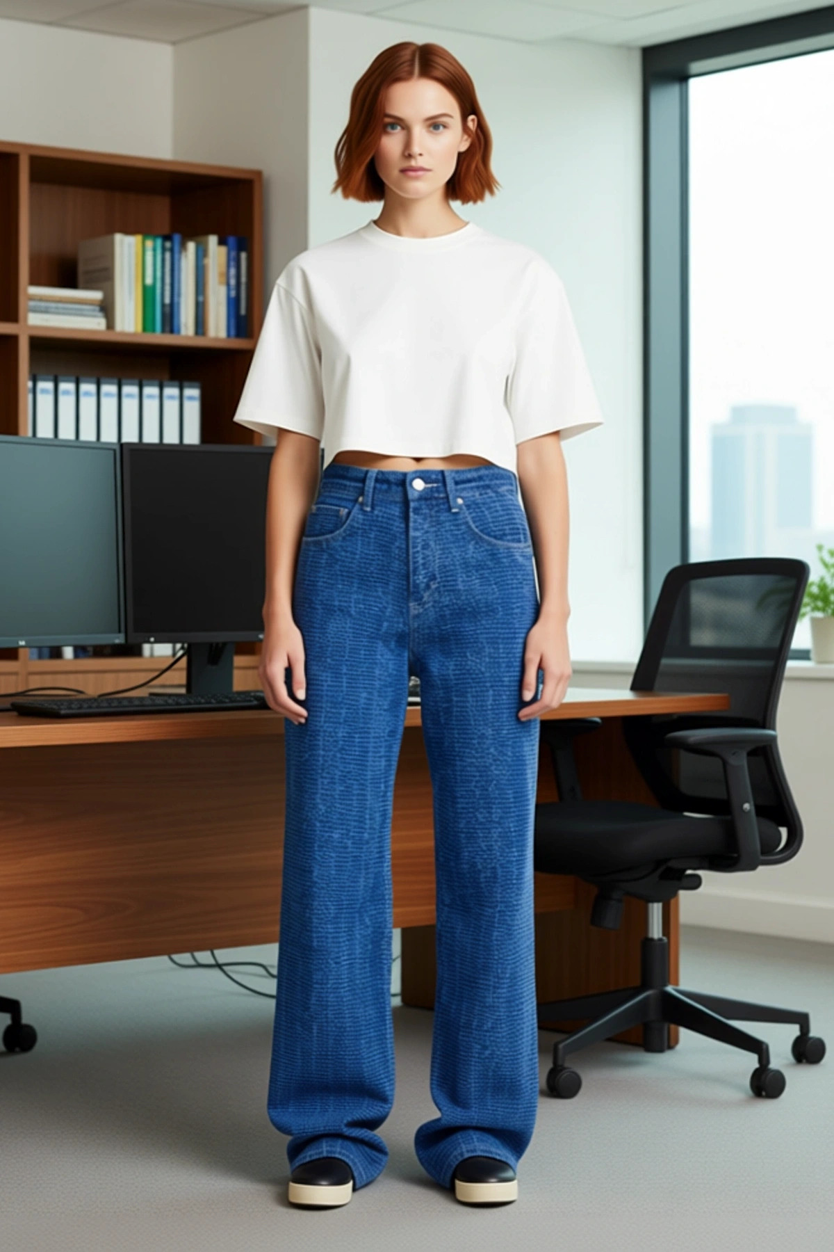 Bu kadın denim pantolon, benzersiz dokusu ve modern wide leg kesimiyle dikkat çekiyor. Yüksek bel tasarımı, vücudu saran ve zarif bir duruş sağlayan bir siluet sunar. %100 pamuk materyali, kumaşa doğal bir yumuşaklık ve nefes alabilirlik kazandırarak gün boyu konforlu bir kullanım vaat eder. Mavi rengin canlılığı ve dokunun verdiği derinlik, bu pantolonu sıradanlıktan uzaklaştırarak stilinize özgün bir dokunuş katıyor. Casual ve günlük koleksiyonun bir parçası olarak tasarlanan bu pantolon, cool ve rahat bir persona arayan her kadın için ideal bir seçenektir. Denim kumaşın dayanıklılığı ve zamansız şıklığı, bu parçayı gardırobunuzun temel taşlarından biri yapacaktır. Pantolonun wide leg kesimi, bacakları sarmadan aşağı doğru genişleyerek rahat bir hareket alanı sunar. Yüksek bel detayı, beli vurgulayarak daha uzun ve ince bir görünüm elde edilmesine yardımcı olur. Rigid dokuma tipi, pantolonun yapısını koruyarak formunu uzun süre muhafaza etmesini sağlar. %100 pamuk içeriği, cildinize dost bir dokunuş sunarken, kumaşın doğal yapısı sayesinde hava dolaşımı da üst düzeydedir. Bu özellikler bir araya geldiğinde, hem şıklığı hem de konforu bir arada sunan bir parça ortaya çıkar. Günlük kullanım için tasarlanmış bu jean, dinamik yaşam tarzınıza uyum sağlayarak stilinizi tamamlar. Bu dokulu denim pantolon, her mevsim için uygun bir seçenektir. İlkbaharda basic bir tişört ve kanvas ayakkabılarla, sonbaharda ise triko bir kazak ve bilekte botlarla mükemmel bir uyum yakalar. Kombin önerisi olarak, açık renkli bir bluz ve topuklu sandaletlerle daha şık bir görünüm elde edebilirsiniz. Alternatif olarak, grafik baskılı bir sweatshirt ve spor ayakkabılarla daha rahat bir tarz yaratabilirsiniz. Pantolonun bakımında, makinede soğuk suyla ve benzer renklerle yıkama önerilir. Kuru temizleme yerine doğal yöntemlerle kurutmak, kumaşın ömrünü uzatacaktır.
