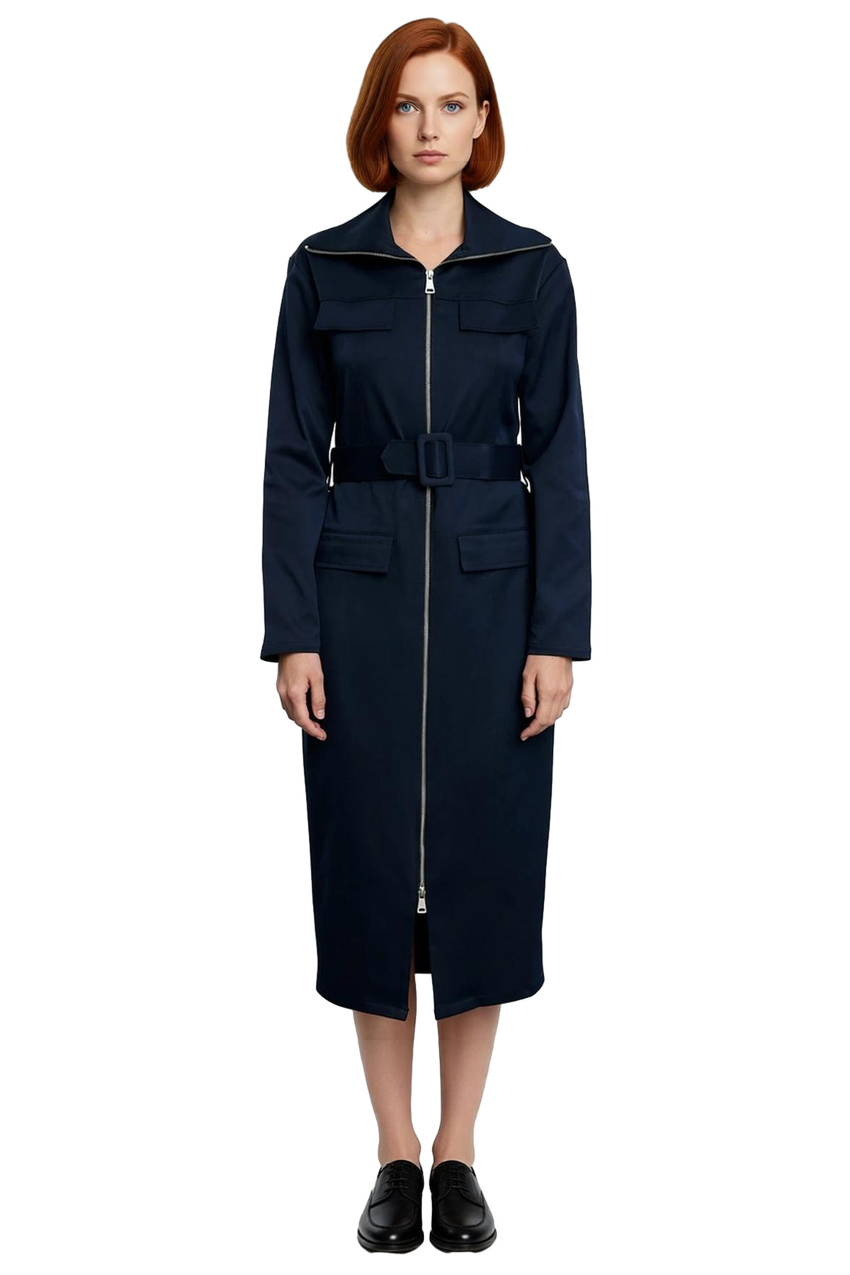 Kadınlar için tasarlanan bu lacivert dokuma gabardin gömlek elbise, zarafet ve konforu bir arada sunar. Fermuarlı kapama detayı, elbiseye modern ve işlevsel bir hava katarken, polyester karışımlı materyali gün boyu rahatlık sağlar. Gömlek elbise kalıbı, vücut hatlarını nazikçe takip eden şık bir siluet oluşturur ve midi boyuyla hem günlük hem de özel anlar için idealdir. Düz deseni ve baskısız yapısıyla minimalist bir stil sunan bu elbise, “Cool & Comfort” persona tanımına mükemmel uyum sağlar ve sizi her ortamda şık kılar.