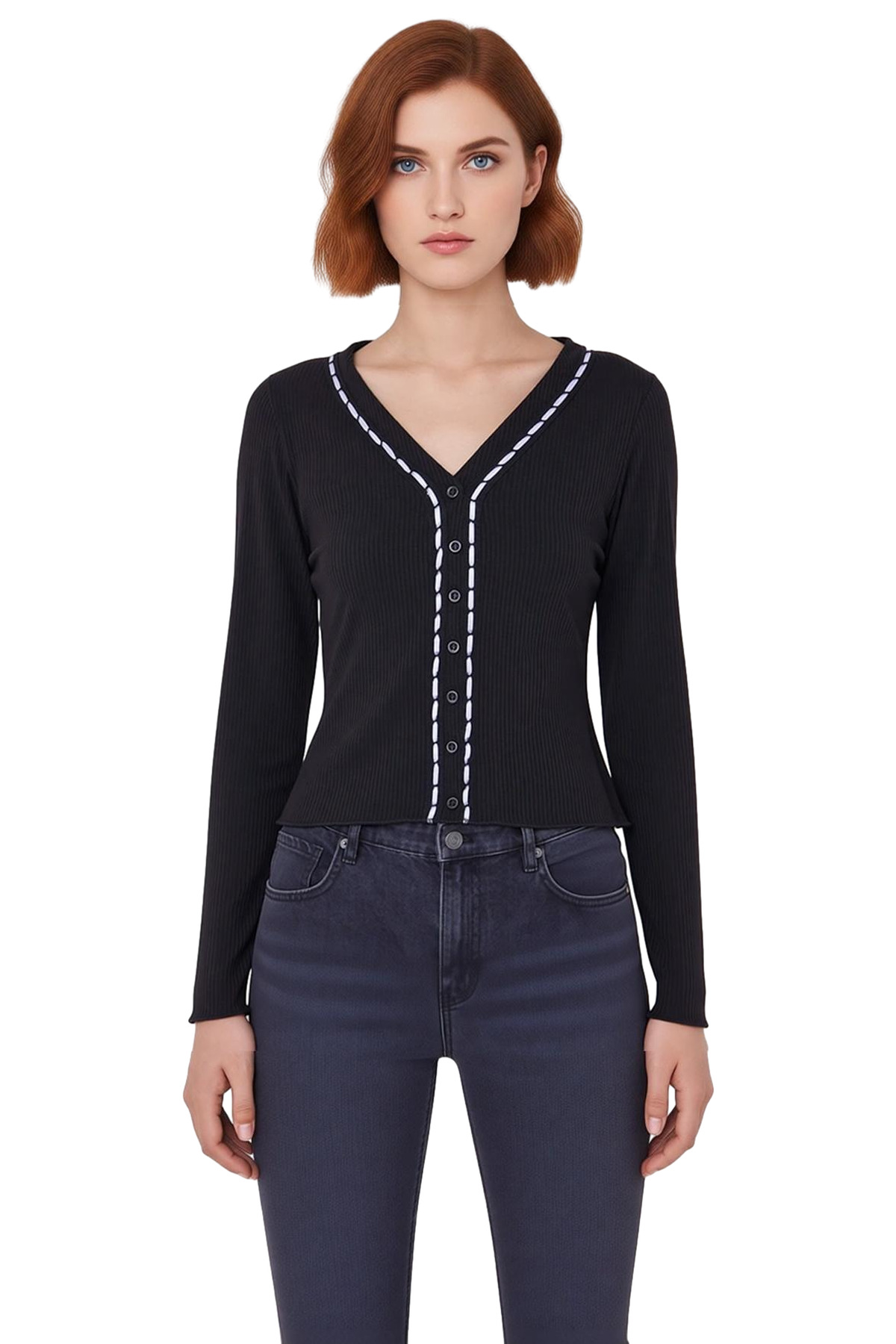 “Kadın Düğmeli V Yaka Uzun Kollu Esnek Örme Üst Kaliteli Şık Rahat Modern Zarif Günlük” için yorum yapan ilk kişi siz olun Yanıtı iptal et