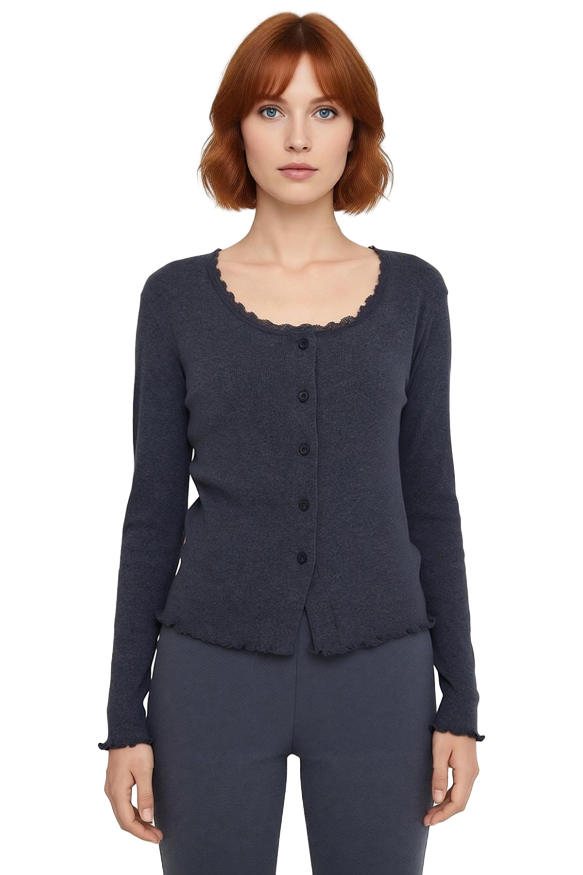 Bu kadın üstü, vücuda oturan kesimi ve esnek örme kumaşı ile hem şık hem de rahat bir kullanım sunar. Düğme detayları, ürüne modern bir hava katarken, uzun kollu tasarımı her mevsim için uygunluk sağlar. Havuz yaka ve fırçalı kaşkorse dokuması, üstün yumuşaklığını ve zarifliğini vurgular. Günlük kullanım için ideal olan bu bluz, 66% polyester ve 34% pamuk karışımı ile hem dayanıklı hem de nefes alabilir bir yapıya sahiptir. Standart kol tipi ve regular boyu, farklı vücut tiplerine uyum sağlamak üzere tasarlanmıştır. Tüm sezonlarda rahatlıkla giyilebilir. Ürünün bakımı Hassas Yıkama talimatlarına uygundur. Kadınlar için özel olarak tasarlanmış bu ürün, stil ve konforu bir arada arayanlar için mükemmel bir seçenektir. Casual ortamlar için vazgeçilmez bir parça olup, tek başına veya farklı alt giyimlerle şık bir şekilde kombinlenebilir. Bu üst, gardırobunuzun temel parçalarından biri olmaya adaydır. Üretim yeri Türkiye’dir. Bu ürün, modern kadının dinamik yaşam tarzına uyum sağlayacak şekilde tasarlanmıştır. Yumuşak dokusu ve rahat kalıbı sayesinde evde, işte veya dışarıda her an kendinizi iyi hissetmenizi sağlar. Düğme kapaması, giyip çıkarmayı kolaylaştırır ve stilinize farklı bir boyut katar. Esnek yapısı, hareket özgürlüğü sunarak gün içindeki aktivitelerinizi kısıtlamaz. Bu ürün, stil sahibi ve konforlu bir görünüm elde etmek isteyen her kadın için harika bir tercihtir. Herhangi bir desene sahip olmayan düz tasarımı, farklı kıyafetlerle kolayca kombinlenmesine olanak tanır. Bu ürün, kalitesi ve şık tasarımı ile öne çıkar.