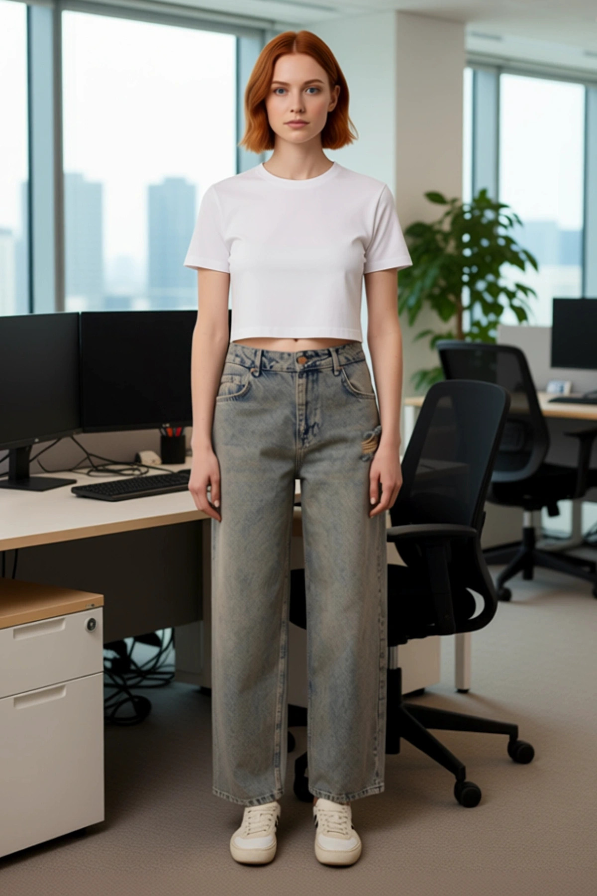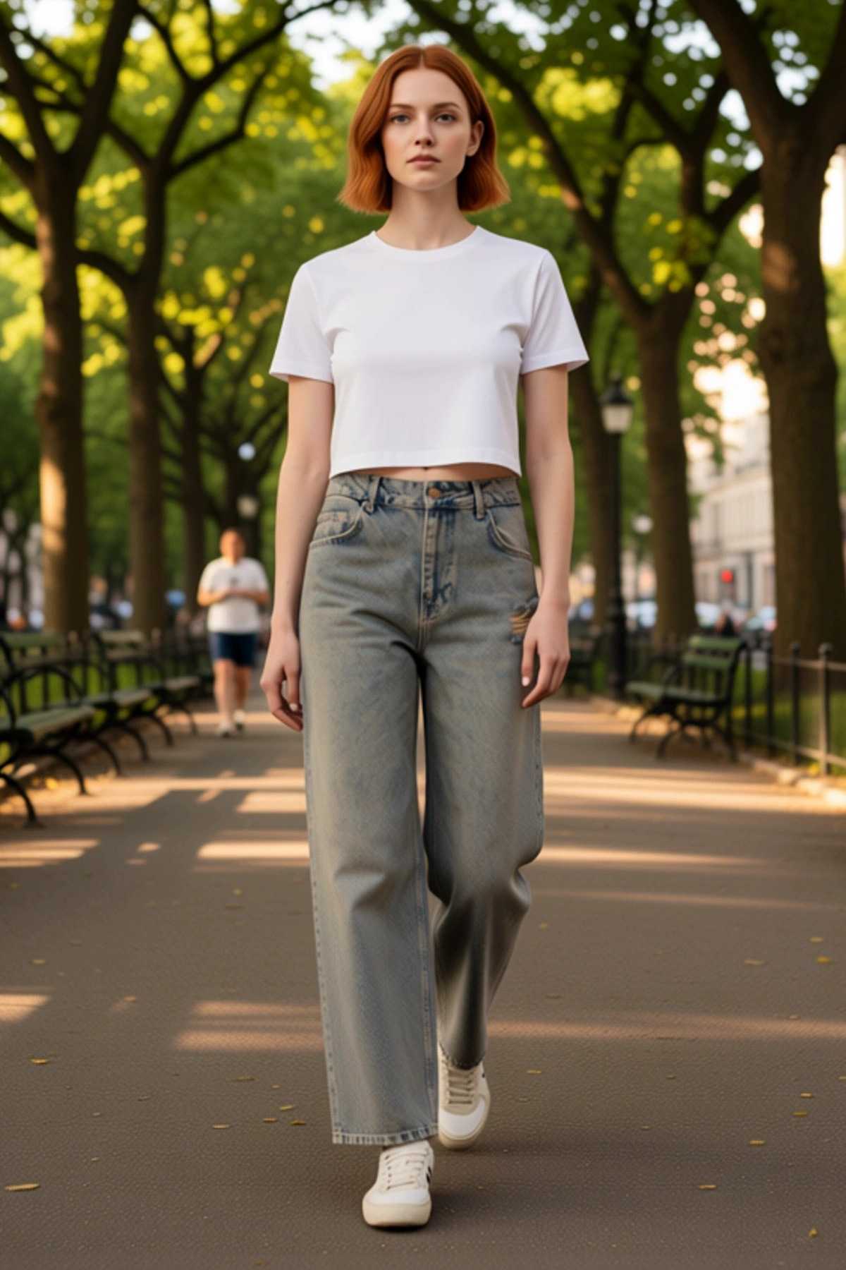 Bu kadın jean pantolon, soluk mavi vintage efekti ve geniş paça kesimiyle öne çıkıyor. Düşük bel detayı, modern bir silüet sunarken, %100 pamuk materyali gün boyu konfor sağlıyor. Rigid dokuma, pantolonun formunu korumasına yardımcı oluyor. Düz deseni sayesinde farklı üstlerle kolayca kombinlenebilen bu jean, casual ve günlük kullanım için ideal. Sürdürülebilirlik detayına sahip olması, bilinçli tüketiciler için tercih sebebi. Cool ve konforlu bir görünüm arayan kadınlar için gardıropların vazgeçilmez bir parçası olmaya aday. Bu pantolon, hem şık hem de rahat bir stil arayanlar için tasarlanmıştır. Pantolonun geniş paça kesimi, rahat bir hareket özgürlüğü sunarken aynı zamanda şık bir görünüm katıyor. Düşük bel detayı, modern bir dokunuş eklerken, pantolonun genel kalıbı olan wide leg, günümüz modasında popülerliğini koruyor. %100 pamuk kumaşı, cildinize nazik davranır ve gün boyu süren bir konfor sağlar. Rigid dokuma, pantolonun şeklini korumasına yardımcı olur ve uzun süreli kullanıma olanak tanır. Bu jean, hem şık hem de rahat olmak isteyen kadınlar için mükemmel bir seçimdir. Günlük aktivitelerden hafta sonu gezilerine kadar her durumda rahatlıkla tercih edilebilir. Bu pantolon, rahatlığı ve stili bir araya getiren bir tasarıma sahiptir. Bu jean pantolon, her mevsim kullanıma uygun bir yapıya sahiptir. Bahar ve yaz aylarında tişörtler ve crop toplarla, sonbahar ve kış aylarında ise kazaklar, sweatshirtler ve kalın trikolarla kombinlenebilir. Pantolonun geniş paçası, farklı ayakkabı modelleriyle de uyum sağlar. Örneğin, beyaz spor ayakkabılarla rahat bir günlük stil oluşturabilir, topuklu botlarla daha şık bir görünüm elde edebilirsiniz. Yüksek bel bir etekle veya dar kesim bir pantolonla da farklı kombinler deneyebilirsiniz. Bu çok yönlü parça, gardırobunuzdaki diğer parçalarla kolayca entegre olarak stilinizi tamamlayacaktır.