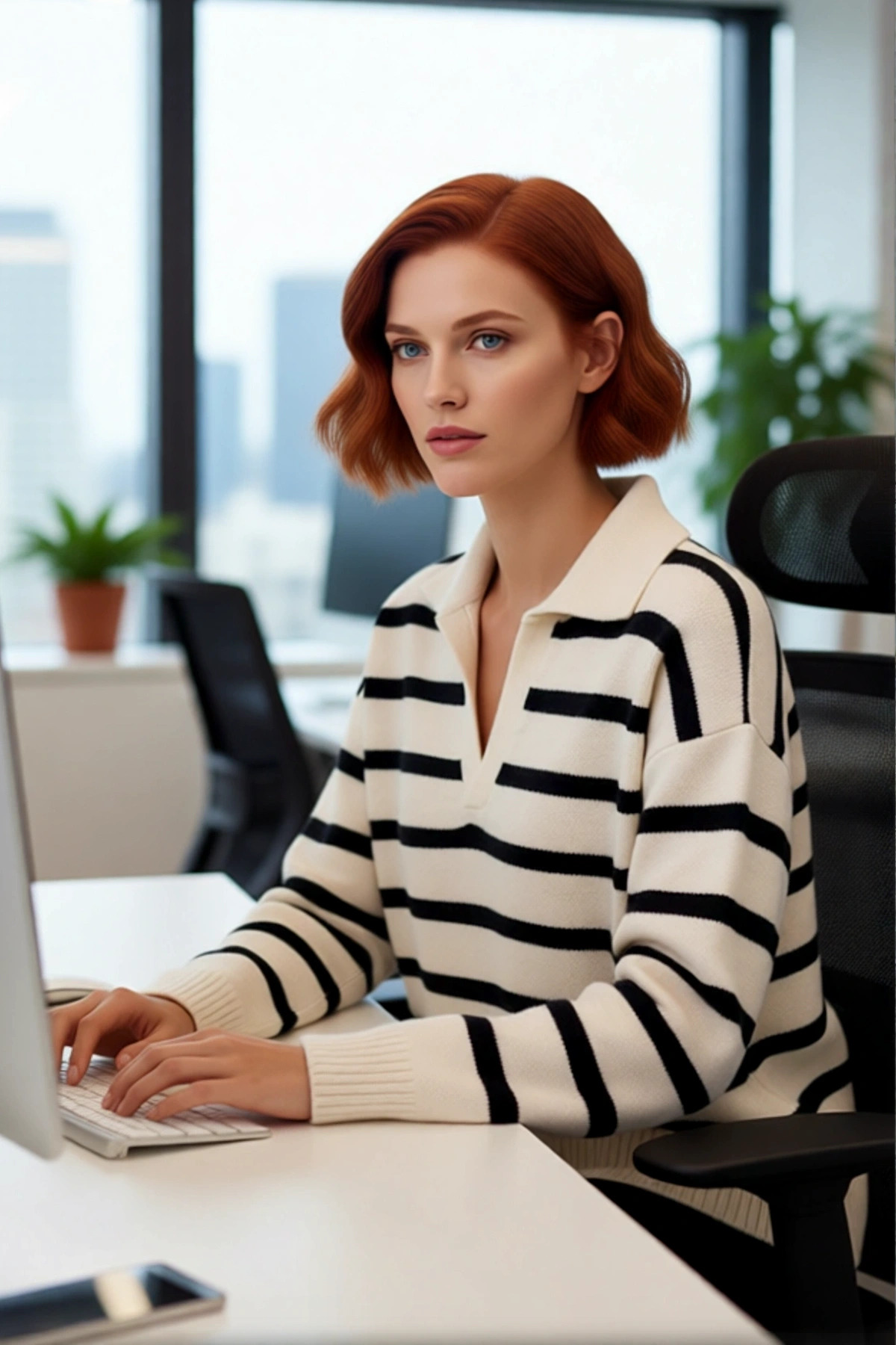 Bu Kadın Düşük Kollu Oversize Triko Kazak, geniş kalıbı ve rahat kesimiyle gün boyu hareket özgürlüğü sunar. %80 Akrilik ve %20 Polyester karışımından oluşan yumuşak materyali, teninize nazikçe dokunurken orta kalınlığı sayesinde kış ve sonbahar serinliğinde sizi sıcak tutar. Ekru zemin üzerine işlenmiş şık çizgili deseni, zamansız bir stil sunarak her kombinle uyum sağlar. Gündelik şıklığı yakalamak isteyen kadınlar için ideal bir seçimdir.