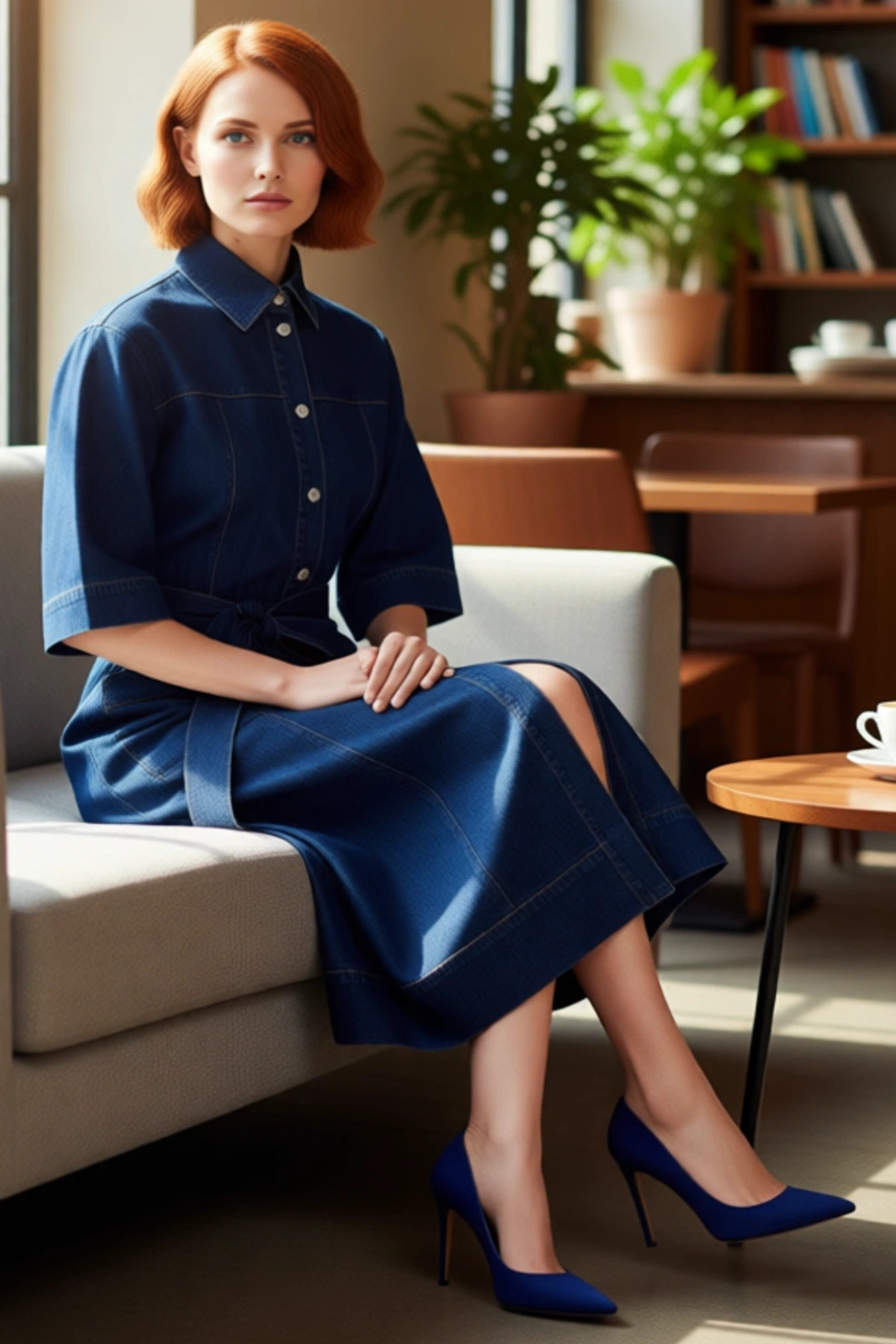Ürün Özellikleri: Shift kalıp, %100 pamuk materyal, düz desen, gömlek yaka, standart kol, denim kumaş, mavi renk, kemerli tasarım.