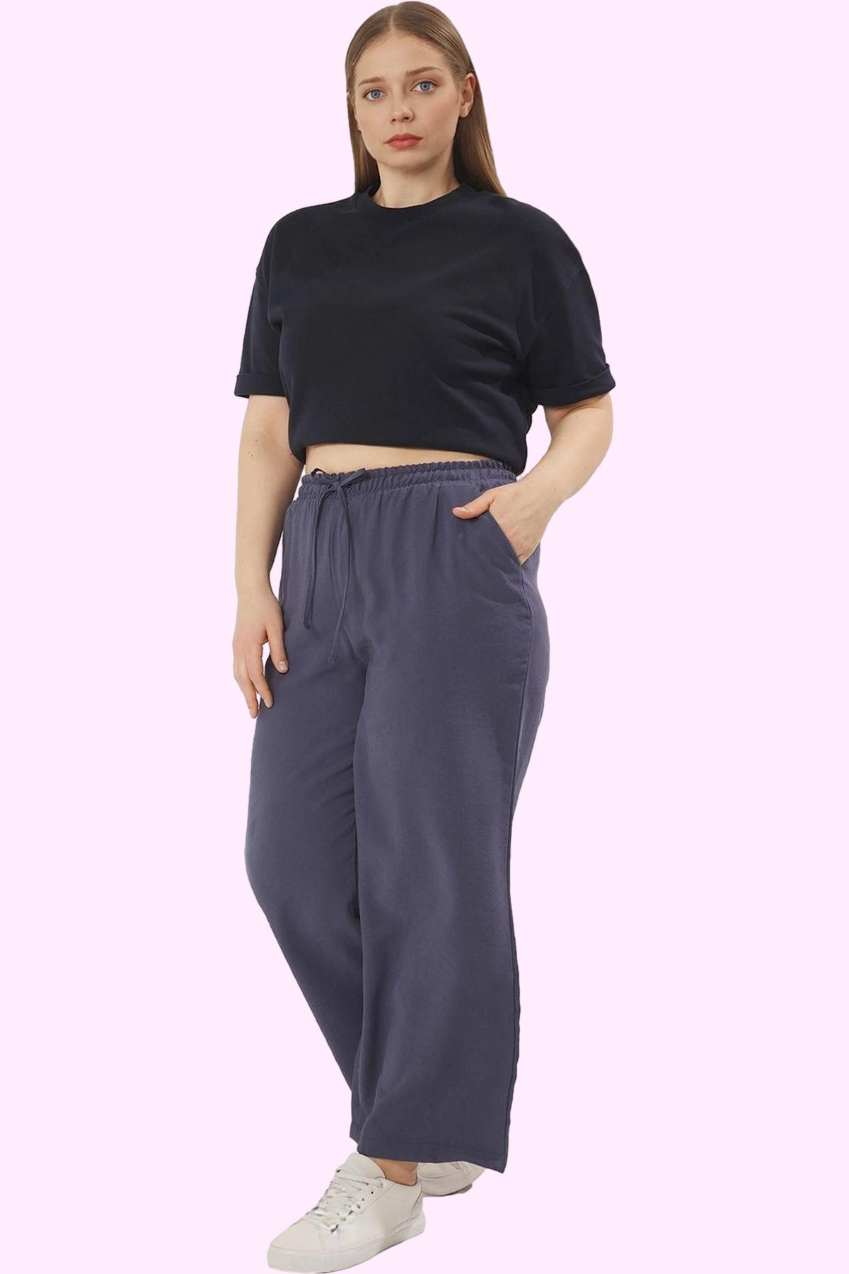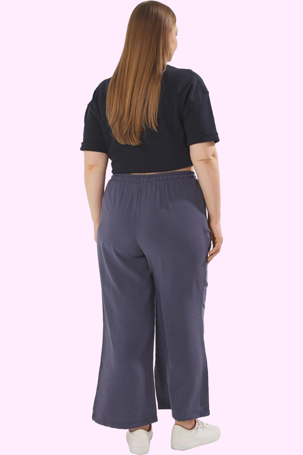 Kadın Düz Desenli Geniş Paça Pantolon Yüksek Bel Lastikli Rahat Yaz Aylarının Vazgeçilmezi