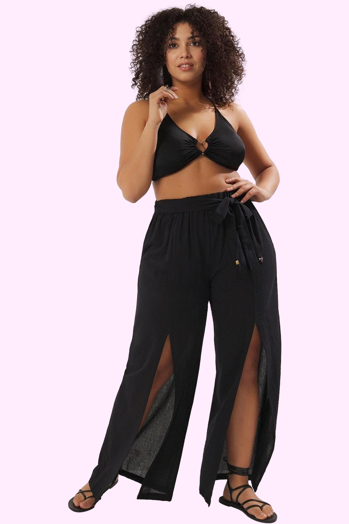Kadın Düz Desenli Geniş Paça Plaj Pantolonu Rahat Yazlık Günlük Kullanım Dayanıklı Malzeme