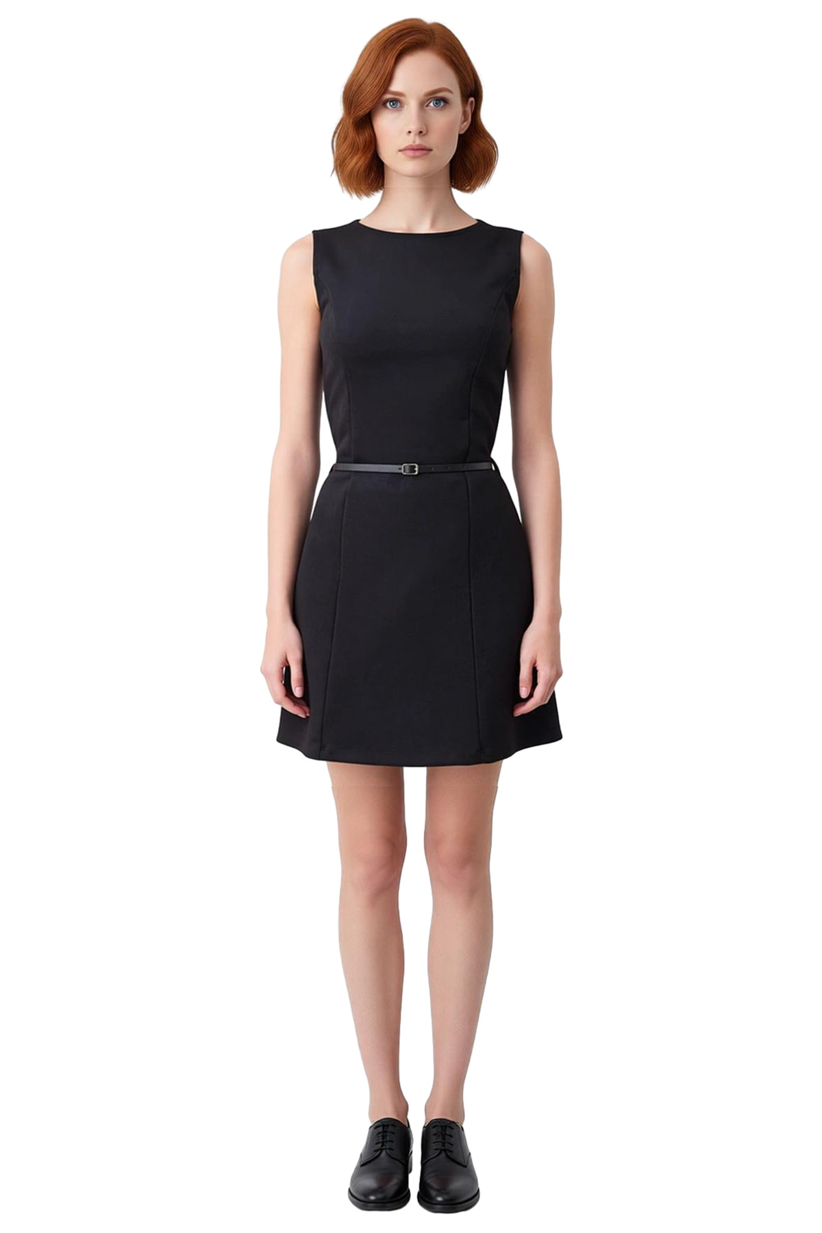 Zarif ve modern çizgileriyle dikkat çeken bu kadın elbise, siyah rengin asaletiyle her anınıza şıklık katmaya hazır. A-line kalıbı sayesinde bedene hoş bir şekilde otururken, belindeki kemer detayı ile figürünüze vurgu yapar. %95 polyester ve %5 elastan materyal bileşimi, esneklik ve hareket özgürlüğü sunarak gün boyu konfor sağlar. Düz deseni, sade ve minimalist bir stil arayanlar için idealdir ve örme kumaş yapısıyla Cool & Comfort anlayışını bir araya getirir.