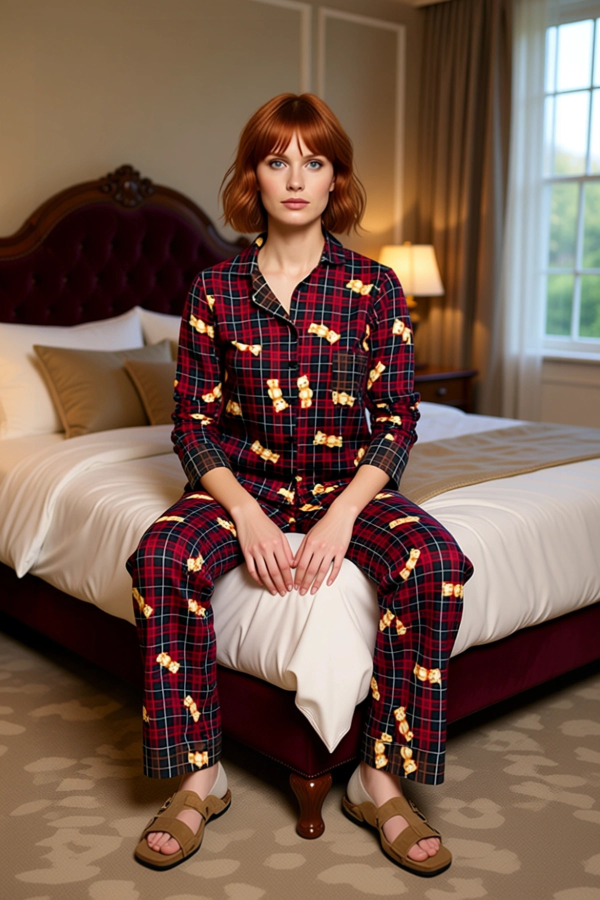 Kadin Ekose Ayici Baskılı Pijama Takımı Gömlek Yaka Fonksiyonel Dayanıklı Kaliteli Estetik
