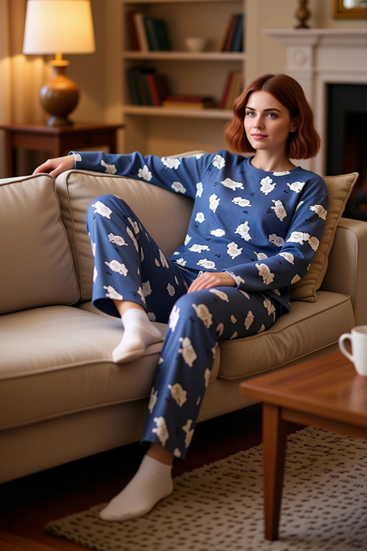 Kadın Çiçek Baskılı Uzun Kollu Pijama Takımı Fonksiyonel Dayanıklı Kaliteli Konforlu Rahat