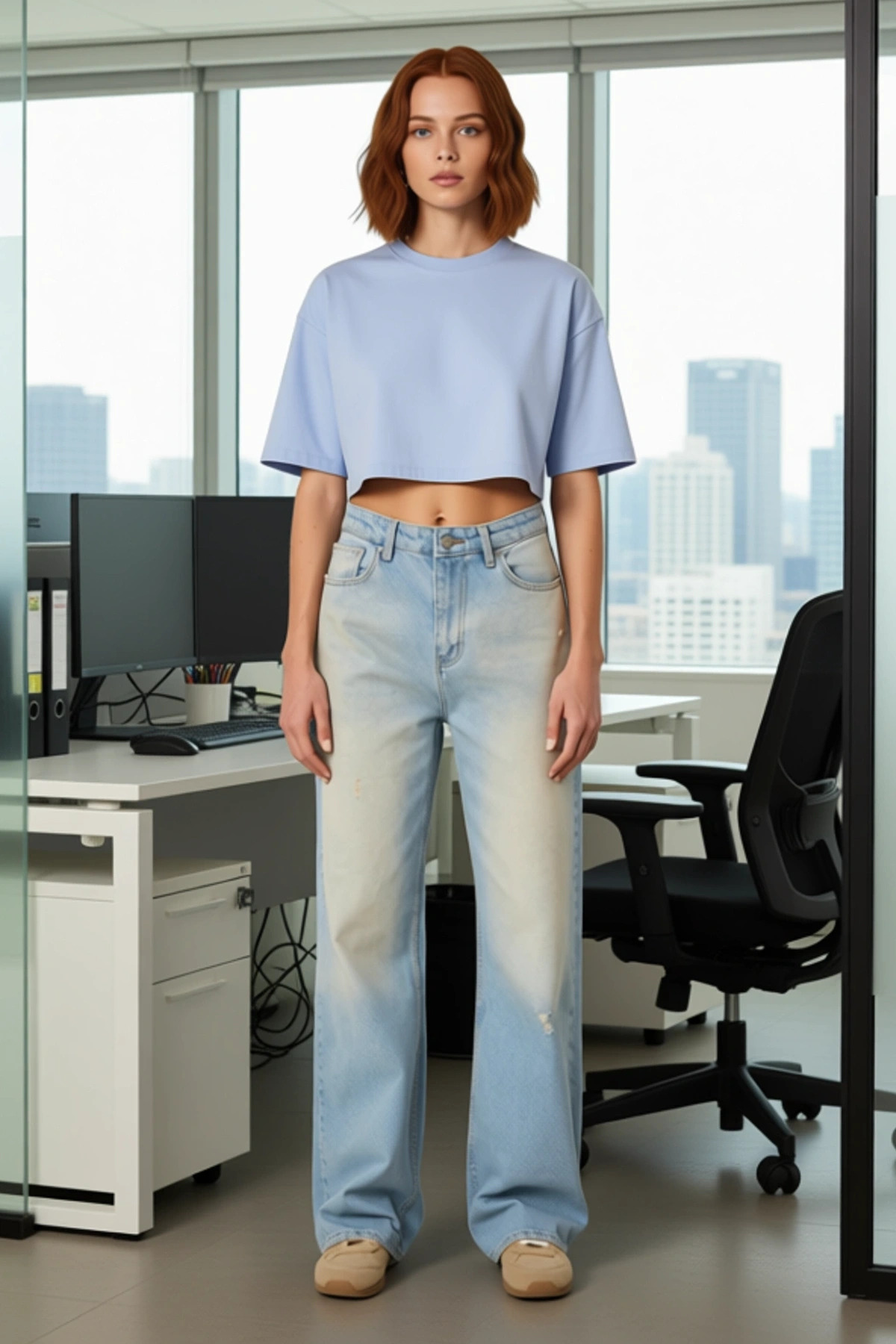 Modern ve rahat bir stil arayan kadınlar için tasarlanan bu denim pantolon, canlı mavi rengi ve eskitme detaylarıyla dikkat çekiyor. %100 pamuk materyali, kumaşa yumuşaklık ve nefes alabilirlik kazandırarak gün boyu konfor sağlıyor. Geniş paça kesimi, rahat hareket özgürlüğü sunarken, yüksek bel detayı ise vücut hatlarını belirginleştirerek zarif bir silüet oluşturuyor. Düz deseni ve vintage esintili yıkaması, pantolona zamansız bir hava katıyor. Rigid denim dokuması, pantolonun formunu korumasına yardımcı oluyor ve uzun ömürlü bir kullanım vadediyor. Bu pantolon, günlük şıklığı ön planda tutanlar için ideal bir seçimdir. Hem rahatlığı hem de stil sahibi görünümü bir arada sunan bu parça, gardırobunuzun temel taşlarından biri olmaya aday. Bu bol paça denim pantolon, yüksek bel kesimi sayesinde modern bir görünüm sunar. Geniş paça detayı, rahat bir kullanım sağlarken aynı zamanda stilinize dinamik bir dokunuş katar. Yaka özelliği bulunmayan bu pantolon, klasik bir jean görünümünü tamamlar. Kısa kollu tişörtler, bol kesim sweatshirtler veya şık bluzlarla rahatlıkla kombinlenebilir. Konforlu kumaşı ve geniş kalıbı sayesinde hareket özgürlüğü sunarak gün boyu rahat hissetmenizi sağlar. Casual ve günlük kullanım için mükemmel bir seçenektir. Bu pantolon, stil sahibi ve rahat bir görünüm elde etmek isteyen her kadın için uygundur. Bu denim pantolon, her mevsim için uygun bir seçenektir. İlkbahar ve yaz aylarında sandaletler ve basic tişörtlerle, sonbahar ve kış aylarında ise botlar ve kazaklarla kombinleyebilirsiniz. Beyaz bir crop top, oversize bir gömlek veya şık bir body ile tamamlayarak farklı stiller yaratabilirsiniz. Altına tercih edeceğiniz spor ayakkabılar, kalın tabanlı botlar veya şık terlikler, kombininizi tamamlayacaktır. Pantolonunuzun ömrünü uzatmak için, soğuk suyla ve benzer renklerle birlikte yıkamanız tavsiye edilir. Bu sayede pantolonunuzun rengi ve dokusu ilk günkü gibi kalacaktır.