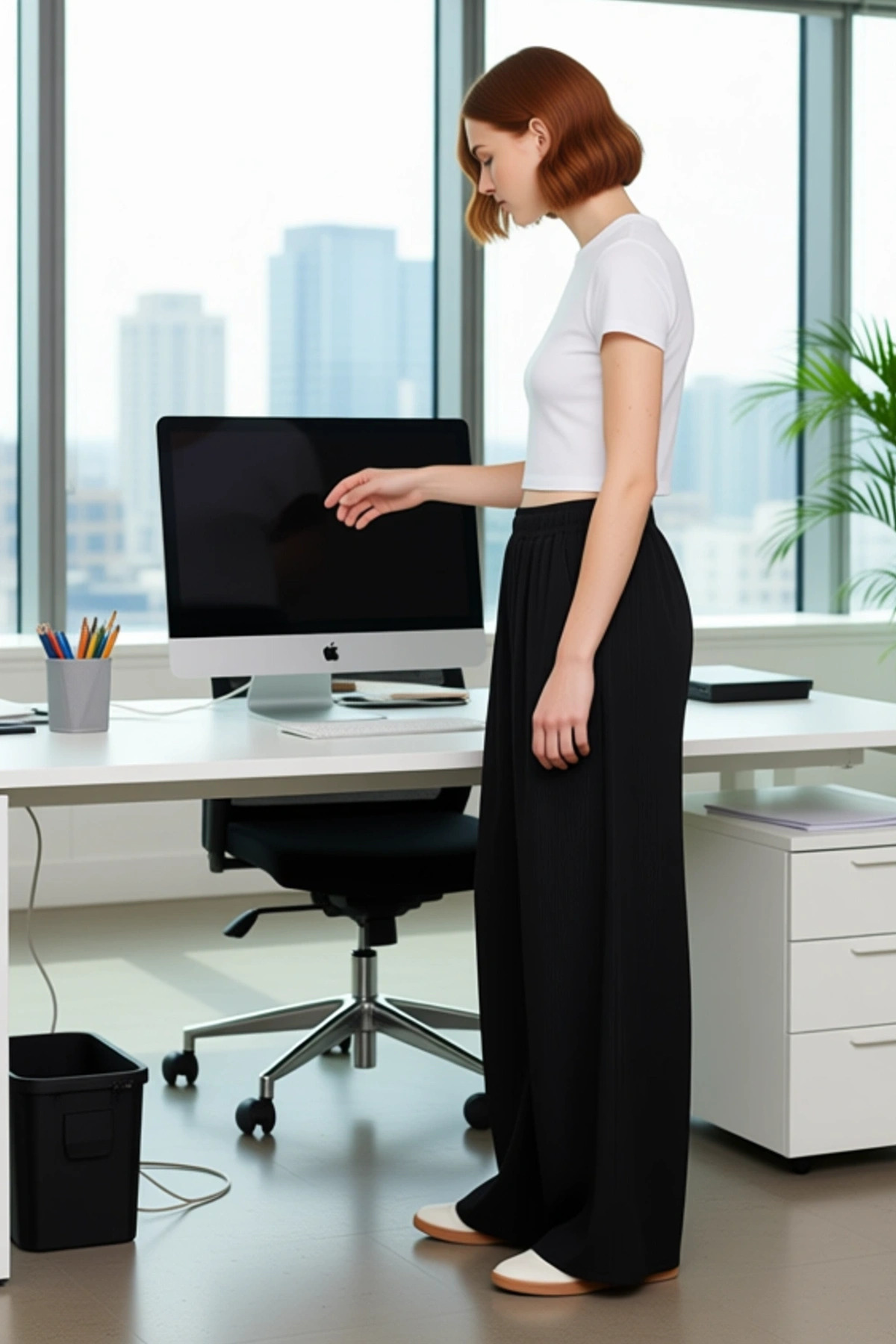 Bu kadın pantolonu, modern tasarımı ve üstün konforu bir araya getiriyor. Geniş paça (wide leg) kesimi, hareket özgürlüğü sağlarken şık bir siluet sunar. Fitilli dokusu, kumaşa benzersiz bir doku ve derinlik katarak pantolonu sıradanlıktan çıkarır. %95 polyester ve %5 elastan karışımı, kumaşa hem dayanıklılık hem de esneklik kazandırır, böylece gün boyu rahatlığınızı korur. Düz siyah rengi, her türlü kıyafetle kolayca uyum sağlayarak çok yönlü bir kullanım sunar. Casual ve günlük kombinler için ideal olan bu pantolon, cool ve konforlu bir stil arayan kadınlar için tasarlandı. Cep detayları, fonksiyonelliği artırırken, beli lastikli tasarımı ekstra bir rahatlık ve uyum sağlar. Uzun boyu ve astarsız yapısı, özellikle sıcak hava koşullarında tercih edilmesini kolaylaştırır. Bu pantolon, hem şıklığı hem de rahatlığı ön planda tutanlar için mükemmel bir seçenektir. Pantolonun geniş paça kesimi, modern bir estetik sunarken aynı zamanda rahat bir kullanım sağlar. Fitilli dokusu, kumaşa görsel bir zenginlik katarak pantolonun daha dikkat çekici olmasını sağlar. Yaka veya kol detayı bulunmayan bu pantolon, farklı üstlerle kolayca eşleştirilebilir. Bel kısmı lastiklidir, bu da pantolonun kolayca giyilip çıkarılmasını ve farklı bedenlere uyum sağlamasını kolaylaştırır. Esnek kumaşı, hareketlerinizi kısıtlamadan gün boyu konfor sunar. Cep detayları, pratik bir kullanım sunarak küçük eşyalarınızı yanınızda taşımanıza olanak tanır. Bu pantolon, hem şık hem de rahat bir görünüm elde etmek isteyen kadınlar için idealdir. Kalıbı, vücuda nazikçe oturarak rahat bir kullanım sunar. Yaz mevsimi için ideal olan bu pantolon, hafif ve nefes alabilen yapısıyla serin kalmanızı sağlar. Beyaz bir basic tişört, şık bir ipek bluz veya crop top ile mükemmel uyum sağlar. Altına beyaz spor ayakkabılar, rahat sandaletler veya şık espadriller tercih edebilirsiniz. Daha sofistike bir görünüm için topuklu sandaletler ve zarif bir üst ile de kombinleyebilirsiniz. Pantolonun bakımında, elde yıkama veya düşük ısıda hassas programda makinede yıkama önerilir. Kurutma makinesi yerine, sererek kurutmak kumaşın yapısını koruyacaktır. Bu pantolon, hem günlük kullanım hem de özel günler için şık ve rahat bir seçenektir.