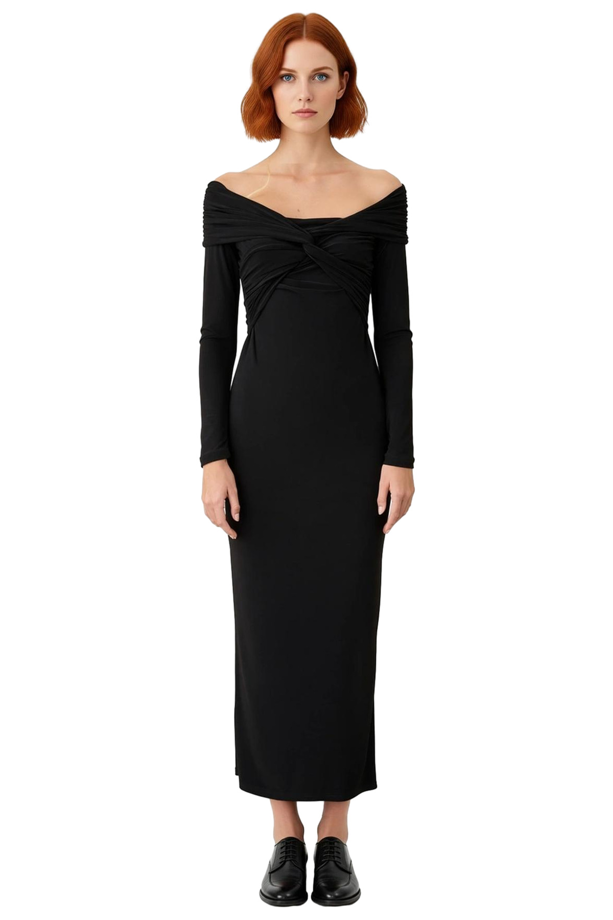 Kadın Fashion Forward Düz Desen Uzun Kollu Bodycon Örme Midi Elbise Özel Günlerin Vazgeçilmezi