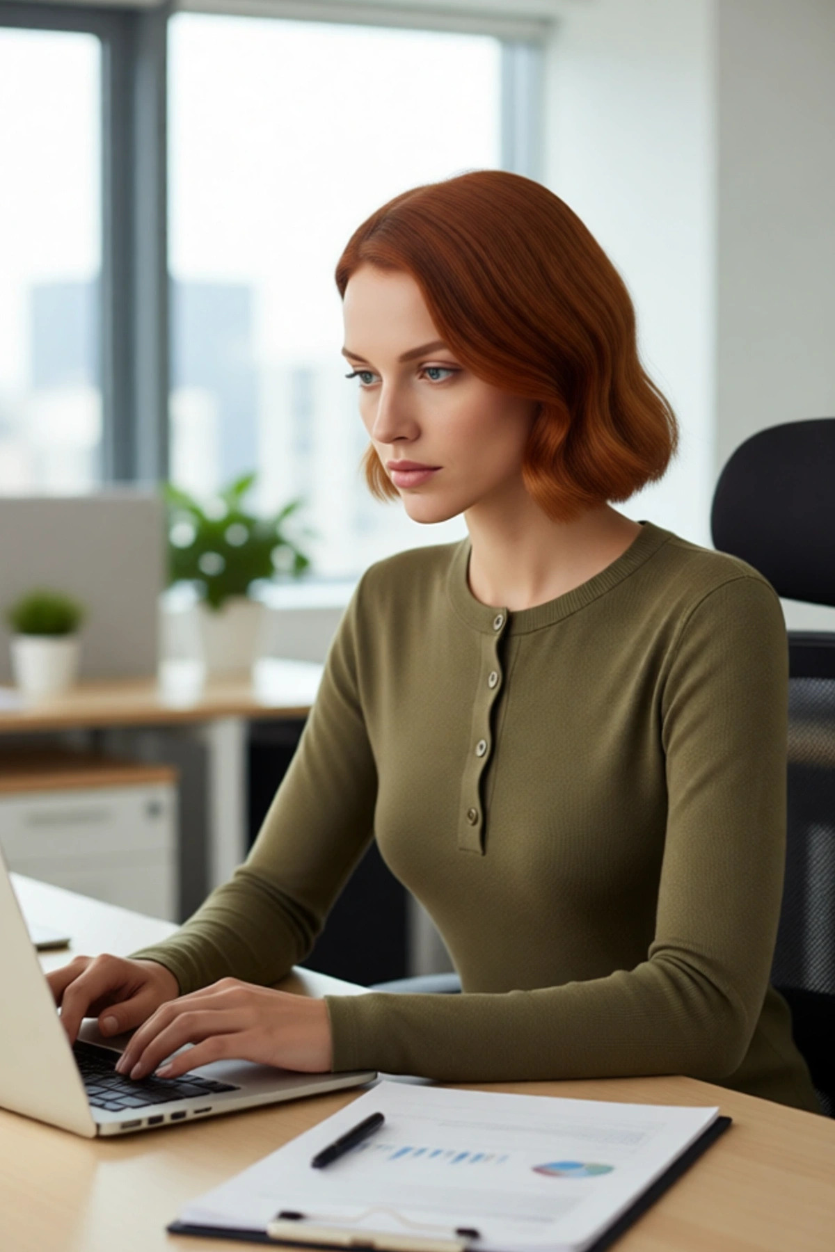 Ürün Özellikleri: Fitted kalıp, viskoz akrilik materyal, düz desen, bisiklet yaka, standart kol, triko kumaş, haki renk.