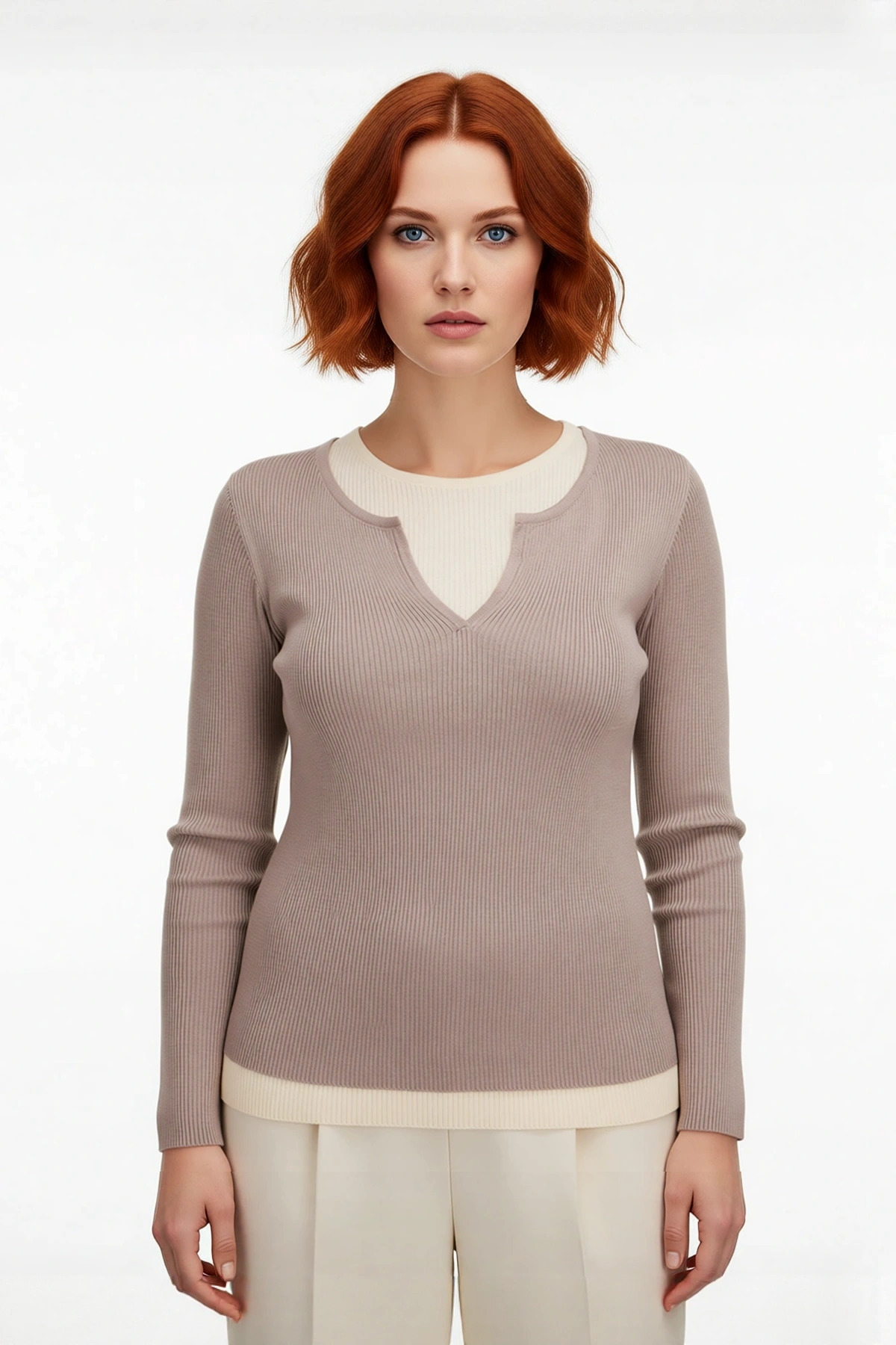 Bu zarif kadın triko kazak, fitted kalıbıyla vücuda tam oturarak modern ve çekici bir görünüm sergiler. %100 polyester materyali sayesinde hafif, yumuşak ve gün boyu rahat bir kullanım sağlar. Bej rengi ve fitilli dokuma tipi, minimalist bir estetik sunarken, çift katman görünümlü tasarımıyla sıradanlıktan uzaklaşır. Düz deseniyle zamansız bir parça olan bu kazak, ilkbahar ve sonbahar mevsimlerinde stilinizi zahmetsizce tamamlar. Gardırobunuzun joker parçalarından biri olmaya adaydır.