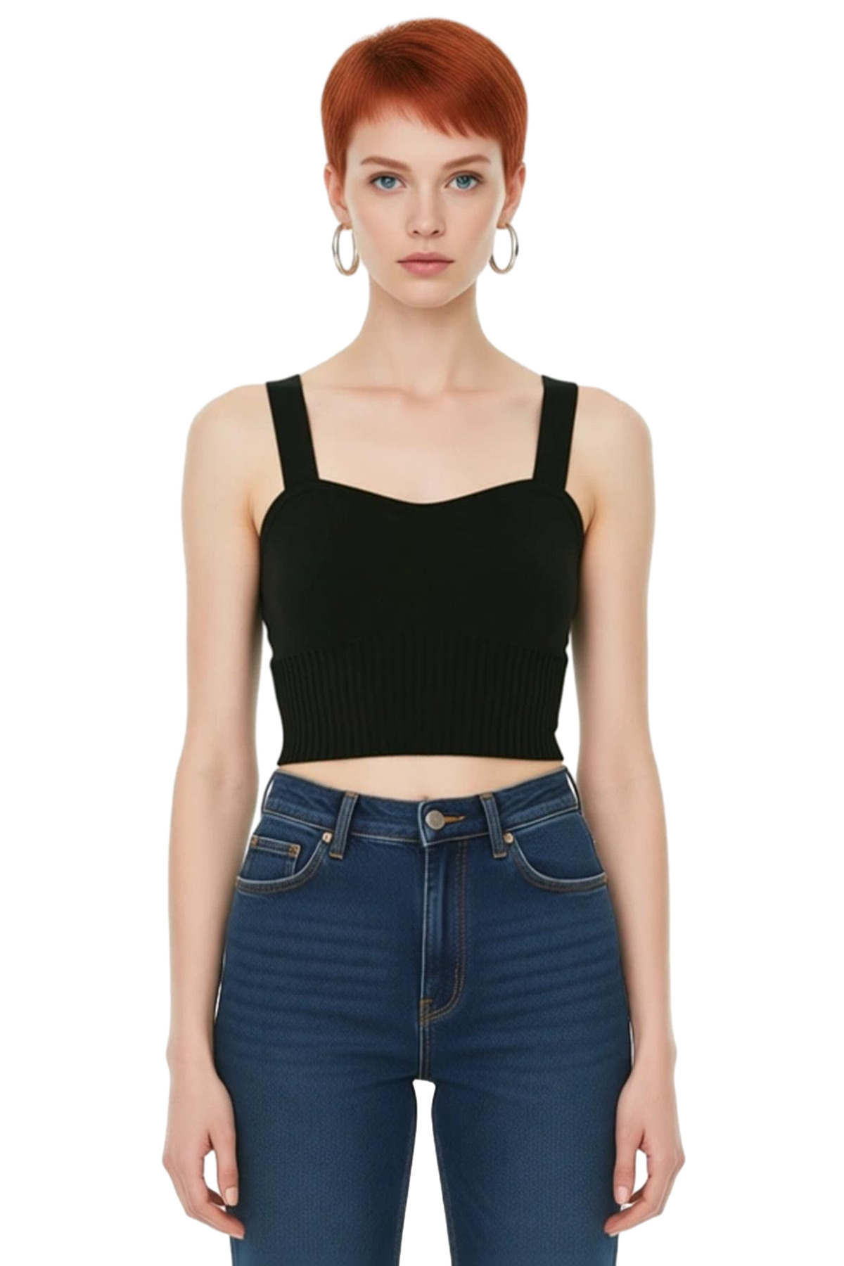 Bu crop bluz, fitted kalıbı ile vücudu sararak modern ve şık bir görünüm sunar. Kalp yaka detayı, bluzun feminen çizgisini ön plana çıkarırken, kolsuz tasarımı yaz aylarında maksimum konfor ve ferahlık sağlar. %100 polyester triko kumaş, ince yapısı sayesinde sıcak havalarda bile serin tutar ve nefes alabilir özelliğiyle gün boyu rahatlık sunar. Düz ve basic silueti, farklı kombinlere kolayca uyum sağlayarak cool bir persona yaratır. Crop boyu, yüksek bel pantolonlar ve eteklerle kusursuz bir uyum yakalayarak stilinizi tamamlar. Bu bluz, Casual ve günlük kullanım için ideal bir tercihtir.Standart kol tipi, hareket özgürlüğünü kısıtlamadan rahat bir kullanım sunar. Cepsiz ve kemersiz tasarımı, minimalist bir estetik anlayışını yansıtır. İnce kumaş yapısı, bluzun yaz mevsimine uygunluğunu pekiştirir. Astar durumu astarsızdır, bu da hafiflik ve nefes alabilirlik katarken, tek plaka dokuma tipi kumaşın kalitesini ve dayanıklılığını gösterir. Bu ürün, sürdürülebilirlik detayları içermese de, 100% polyester materyal bileşeni ile dayanıklılık ve kolay bakım imkanı sunar. T41 yıkama talimatına uyarak uzun ömürlü kullanım sağlayabilirsiniz. Menşei Türkiye’dir.Bu şık bluz, yüksek bel jean’ler, şortlar veya eteklerle mükemmel bir şekilde kombinlenebilir. Yazın tek başına kullanılabileceği gibi, serin akşamlarda ince bir hırka veya ceket ile de tamamlanabilir. Casual ve günlük ortamlarda rahatlıkla tercih edilebilir. Vücuda oturan fitted kesimi, her vücut tipine uyum sağlayarak konforlu bir deneyim sunar. Cool ve rahat bir stil arayan kadınlar için gardıroplarının vazgeçilmez bir parçası olacaktır.