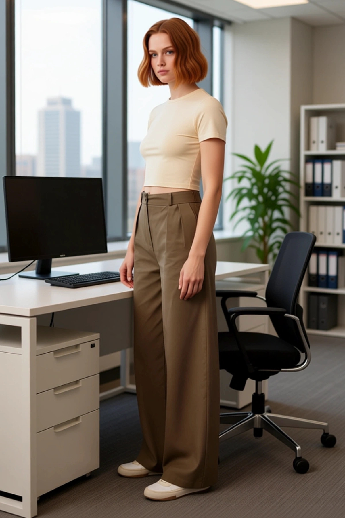 Bu kadın pantolonu, %100 pamuk gabardin kumaştan üretilmiş olup, yumuşak dokusu ve rahat kalıbıyla öne çıkar. Kahverengi rengi ve düz deseni, her türlü üst giyim ürünüyle kolayca uyum sağlar. Yüksek bel ve bol paça kesimi, modern ve şık bir siluet yaratırken, gabardin dokusunun sunduğu dayanıklılık uzun ömürlü bir kullanım vaat eder. Bu pantolon, hem günlük şıklık hem de rahatlık arayan kadınlar için ideal bir seçenektir. Pamuğun doğal nefes alabilirliği, gün boyu konforlu bir his sunar. Pantolonun zarif dikişleri ve özenli işçiliği, kalitesini yansıtır. Geniş paça detayı, hareket özgürlüğünü artırarak rahat bir kullanım deneyimi sunar. Pantolonun tasarımında yüksek bel ve bol paça kesimi ön plandadır. Bu kesimler, hem bel bölgesini vurgular hem de bacaklara özgürlük alanı tanır. Gabardin kumaşın hafif dökümlü yapısı, pantolonun şık duruşunu destekler. Günlük kullanım için tasarlanmış bu pantolon, yumuşak tuşesi ile gün boyu rahatlık sağlar. Pantolonun kalıbı, farklı vücut tiplerine uyum sağlayacak şekilde tasarlanmıştır. Cep detayları, pantolonun fonksiyonelliğini artırarak günlük kullanımda pratiklik sunar. Bu pantolon, cool ve konforlu bir stil için mükemmel bir temel oluşturur. Bu kahverengi gabardin pantolon, her mevsimde kullanıma uygundur. Özellikle bahar ve kış aylarında tercih edilebilir. Üzerine basic bir tişört, şık bir bluz veya triko kazak giyerek farklı kombinler oluşturabilirsiniz. Altına spor ayakkabı, bot veya loafer gibi ayakkabılarla tamamlayabilirsiniz. Pantolonun bakımı için, düşük sıcaklıkta makinede yıkanması önerilir. Ağartıcı kullanılmamalıdır. Düşük ısıda ütülenebilir.