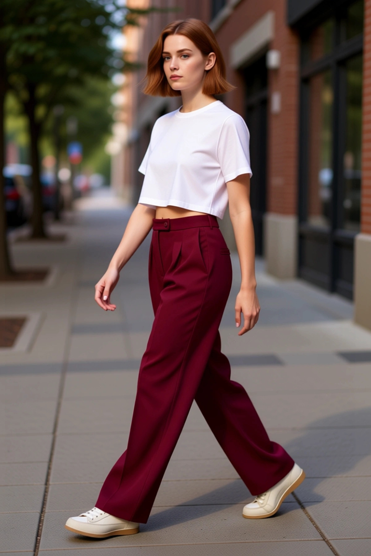 Bu kadın pantolonu, geniş paça kesimi ve zarif dokuma kumaşı ile stil sahibi bir görünüm sunar. Bordo rengi, zamansız bir şıklık katarken, düz deseni farklı üstlerle kolayca uyum sağlar. %96 polyester ve %4 elastan karışımı, pantolonun hem dayanıklı hem de esnek olmasını sağlayarak gün boyu konforlu bir kullanım sunar. Wide leg kalıbı, modern bir siluet oluştururken, boru paça detayı klasik bir dokunuş katar. Dokuma kumaşın kalitesi, pantolonun şık ve sofistike duruşunu destekler. Bu pantolon, hem günlük kullanımda hem de özel davetlerde rahatlıkla tercih edilebilecek çok yönlü bir parçadır. Kadınların gardıroplarında yer alması gereken, hem şık hem de kullanışlı bir alternatiftir. Pantolonun normal bel yüksekliği ve çift cepli tasarımı, fonksiyonelliğini artırır. Orta kalınlıktaki kumaşı, her mevsim için idealdir. Finike dokuma tipi, kumaşa özgün bir doku ve dayanıklılık kazandırır. Elastan içeriği, pantolonun vücut hatlarına nazikçe uyum sağlamasına yardımcı olur, bu da hareket özgürlüğünü ve rahatlığı maksimize eder. Smart persona ile uyumlu olan bu pantolon, casual ortamlardan daha şık davetlere kadar geniş bir kullanım alanına sahiptir. Geniş paça kesimi, bacakları daha uzun ve zarif gösterme eğilimindedir, bu da pantolonu her vücut tipine uygun hale getirir. Bu pantolon, her mevsimde şıklığı ve konforu bir arada sunar. Kombin önerisi olarak, üzerine basic bir beyaz tişört ve spor ayakkabı ile rahat bir günlük stil oluşturabilirsiniz. Daha şık bir görünüm için, ipek bir bluz ve topuklu ayakkabılarla tamamlayabilirsiniz. Kot ceketler, blazerlar, şık gömlekler ve ince trikolar ile harika bir uyum yakalar. Ayakkabı olarak ise sivri burunlu topuklular, zarif babetler veya şık loaferlar tercih edilebilir. Pantolonun bakımı için, soğuk suyla hassas yıkama ve düşük ısıda ütüleme önerilir. Bu pantolon, stilinize sofistike bir dokunuş katacaktır.