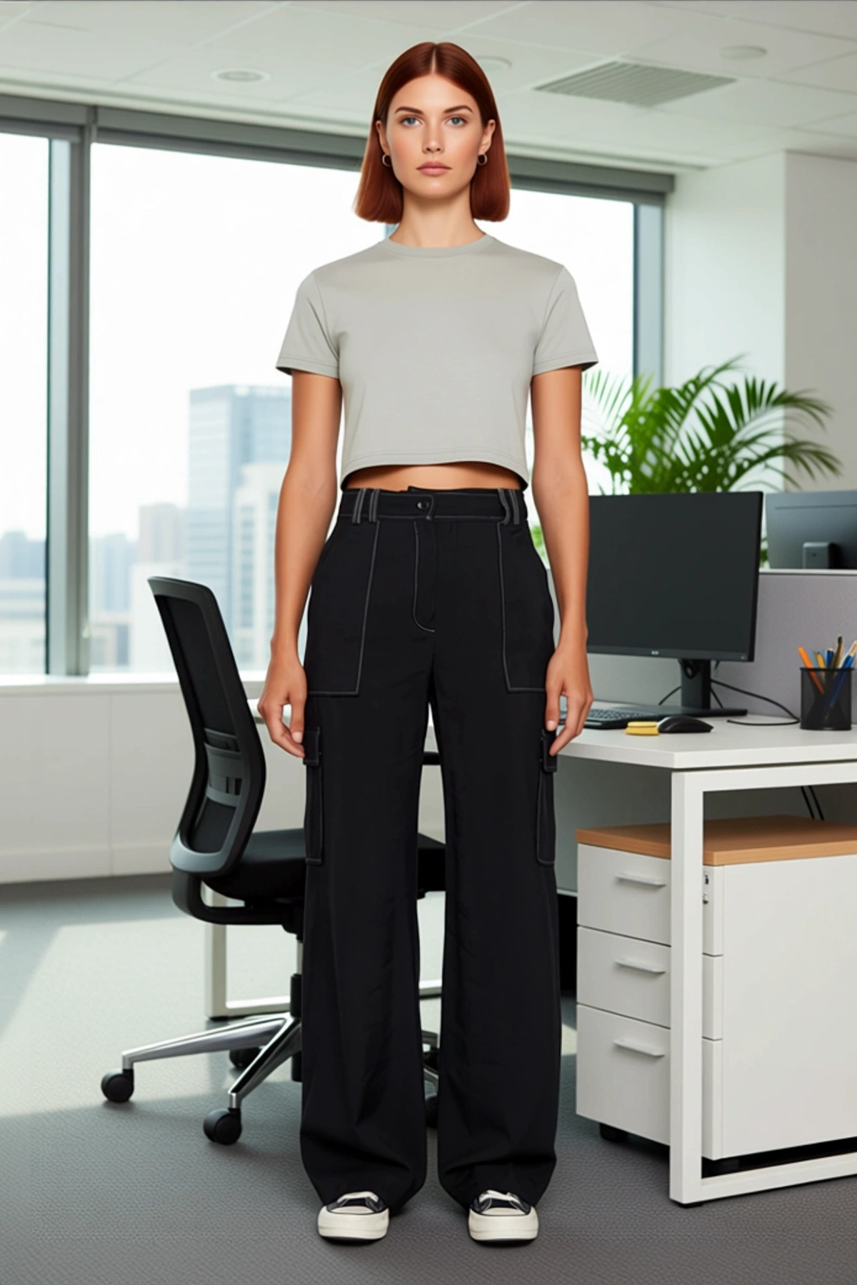 Bu kargo pantolon, modern ve şehirli bir görünüm arayan kadınlar için tasarlanmıştır. %100 liyosel malzemeden üretilmiş olup, aerodinik dokuma tipi sayesinde hem hafif hem de dayanıklıdır. Düz deseni ve siyah rengi ile her türlü üst giyimle kolayca uyum sağlar. Yüksek bel ve geniş paça kesimi, rahat bir kullanım sunarken, kargo cepleri ve belirgin kontrast dikiş detayları pantolona özgün bir karakter kazandırır. Uzun boyu ve kargo silueti ile hem şık hem de fonksiyonel bir parça olarak öne çıkar. Bu pantolon, günlük şıklığı ve konforu bir arada arayan kadınlar için ideal bir seçenektir. Pantolonun tasarımında konfor ve stil bir araya gelmiştir. Geniş paça yapısı, hareket özgürlüğü sağlarken, yüksek bel detayı vücuda oturan bir görünüm sunar. Kargo cepleri, hem eşyalarınızı taşımak için pratik bir çözüm sunar hem de pantolonun tasarımına sportif bir hava katar. Kontrast dikişler, pantolonun genel görünümünü zenginleştirerek dikkat çekici bir detay oluşturur. Aerobin dokuma kumaşı, cildinize nazik davranır ve gün boyu ferah bir his verir. Bu pantolon, rahatlığı ve şıklığı bir arada arayan kadınlar için vazgeçilmez bir parçadır. Bu pantolon, dört mevsim boyunca rahatlıkla kullanılabilir. Kot ceketler, basic tişörtler ve sneakerlarla kombinleyerek rahat bir günlük stil yaratabilirsiniz. Daha şık bir görünüm için ise ipek bluzlar ve topuklu ayakkabılarla tamamlayabilirsiniz. Pantolonun uzun ömürlü olması için, yıkama talimatlarına dikkat edilmesi önemlidir. Ürünün ilk günkü kalitesini korumak adına nazik yıkama yöntemleri tercih edilmelidir.