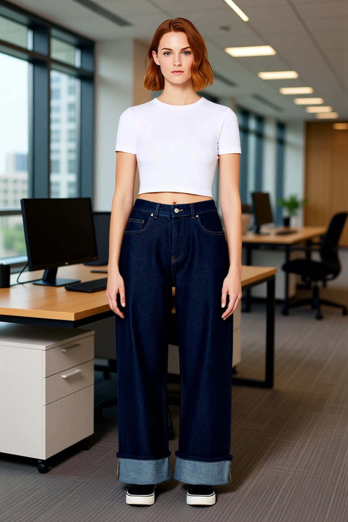 Stil sahibi kadınlar için tasarlanan bu geniş paça denim pantolon, gardıropların olmazsa olmazı olacak. Koyu lacivert rengi ve düz deseni ile zamansız bir şıklık sunan bu parça, %100 pamuk materyali sayesinde gün boyu üstün konfor sağlar. Wide leg kesimi, modern ve rahat bir silüet oluştururken, normal bel detayı her vücut tipine uyum sağlayarak estetik bir görünüm sunar. Paça katlaması, pantolona dinamik bir hava katarken, cool ve konforlu bir persona yansıtır. Bu jean, hem günlük kullanımda hem de özel günlerde rahatlıkla tercih edilebilecek çok yönlü bir parçadır. Kaliteli denim dokusu, uzun yıllar boyunca ilk günkü görünümünü koruyarak dayanıklılık sunar. Bu jean pantolonun en belirgin özelliklerinden biri, geniş paça kesimidir. Bu kesim, hareket özgürlüğü sunmanın yanı sıra, zarif bir dökümle şık bir görünüm yaratır. Normal bel yüksekliği, rahat bir kullanım sağlarken, vücudu nazikçe sarar. %100 pamuk içeriği, nefes alabilirlik ve yumuşaklık sunarak cildinize nazik davranır. Rigid denim dokusu, pantolonun yapısını koruyarak zamana meydan okuyan bir duruş sergiler. Bu pantolon, hem rahatlığı hem de şıklığı bir arada arayan kadınlar için ideal bir seçenektir. Günlük aktivitelerden özel buluşmalara kadar her ortamda stilinizi tamamlayacak. Bu koyu lacivert wide leg jean, her mevsim için uygun bir seçenektir. İlkbahar ve yaz aylarında hafif bir tişört ve sandaletlerle, sonbahar ve kış aylarında ise kalın bir kazak ve botlarla mükemmel bir uyum yakalar. Beyaz bir basic tişört, kot ceket ve beyaz spor ayakkabılarla kombinlendiğinde enerjik bir sokak stili oluşturur. Daha şık bir görünüm için, saten bir bluz, topuklu ayakkabılar ve minimal takılarla tamamlanabilir. Pantolonun bakımında, düşük sıcaklıkta yıkama tercih edilerek kumaşın dokusu ve rengi korunmalıdır.