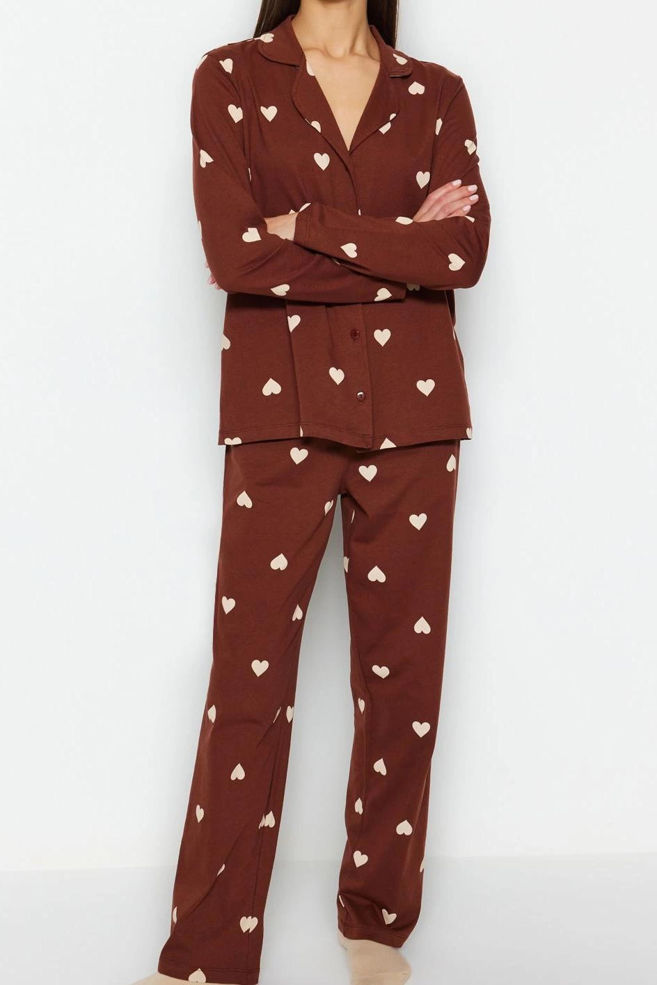 Bu şık kadın pijama takımı, evinizde geçirdiğiniz her anı daha konforlu ve stil sahibi kılmak için tasarlandı. %100 pamuktan üretilmiş olup, nefes alabilen ve cilde nazik bir dokunuş sunan örme kumaşı ile öne çıkar. Üzerindeki sevimli kalp deseni, takıma neşeli bir hava katarken, fitted kalıbı sayesinde vücuda zarif bir şekilde oturur. Bu pijama takımı, homewear koleksiyonunun en rahat parçalarından biridir ve hem dinlenirken hem de uyurken üst düzey konfor sağlamak üzere tasarlanmıştır. Süprem dokuma kalitesi ve metraj baskı tekniği ile üretilen bu ürün, uzun süreli kullanım için idealdir. Kadınlar için cool ve konforlu bir yaşam tarzını yansıtan bu basic silüet, lounge ve ev ortamlarında rahatlıkla tercih edilebilir. Takımın tasarımında gömlek yaka detayı, standart kesim uzun kolları ve normal bel yüksekliği gibi özellikler bulunur. Boru paça pantolonu, hareket özgürlüğünü kısıtlamadan rahat bir uyku deneyimi sunar. Bu pijama takımı, yumuşak dokusu ve hafif yapısıyla gün boyu süren bir rahatlık sunar. Evde şıklığından vazgeçmek istemeyen kadınlar için idealdir. Gömlek yaka tasarımı klasik bir görünüm sağlarken, düğmeli kapanışı kullanımı kolaylaştırır. Bu ürün, evinizde kendinizi özel hissetmenizi sağlayacak detaylara sahiptir. Kış mevsimi için mükemmel bir seçim olan bu pijama takımı, yumuşaklığı ve sıcak tutma özelliği ile dikkat çeker. Bu takımı, rahat bir eşofman altı veya tayt ile tamamlayarak ev içinde şık bir görünüm elde edebilirsiniz. Ayakkabı olarak ise yumuşak terlikler veya ev botları tercih edilebilir. Ürünün bakımı için nazik yıkama önerilir. Bu pijama takımı, hem kendiniz için keyifli bir hediye olabilir hem de sevdiklerinize anlamlı bir sürpriz yapmanızı sağlar. Ev giyim gardırobunuzun vazgeçilmez bir parçası olmaya adaydır.