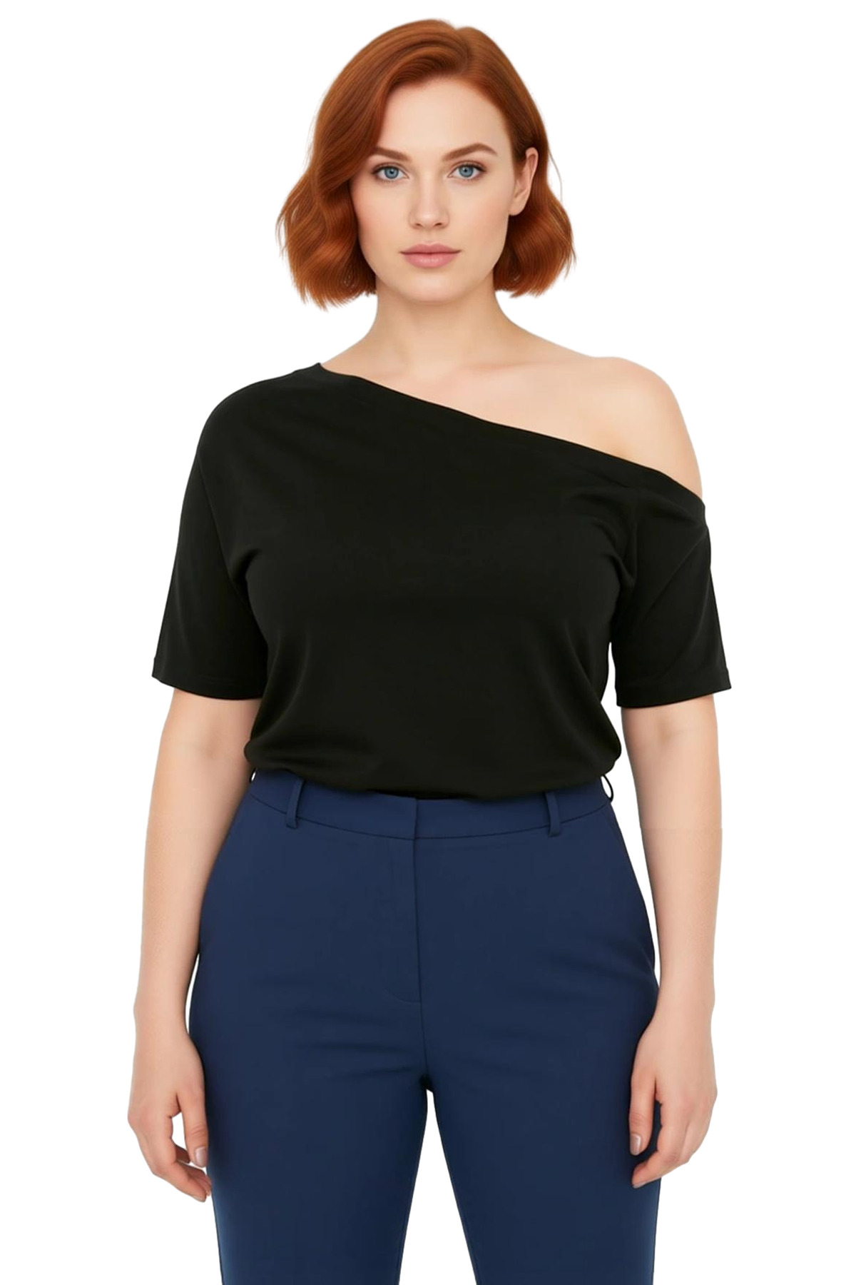 Bu zarif bluz, %100 pamuk içeriğiyle cildinizle dost, nefes alabilen bir yapı sunar. Asimetrik yaka detayı, modern ve dikkat çekici bir görünüm sağlarken, düşük kol tasarımı ürüne feminen bir dokunuş katar. Düz deseni ve klasik siyah rengi, her mevsim ve her tarzla kolayca uyum sağlayarak çok yönlü bir kullanım imkanı sunar. Regular kalıbı, vücudu sıkmadan rahat bir oturuş sağlarken, kısa kol boyu sıcak havalarda veya katmanlı giyimde idealdir. Cepsiz ve kemersiz minimalist tasarımı, şık ve sade bir görünüm arayanlar için mükemmeldir. Süprem dokuma tipi, kumaşa yumuşaklık ve pürüzsüz bir yüzey kazandırır. Cool & Comfort felsefesiyle tasarlanmış bu bluz, hem rahat hem de stil sahibi olmak isteyen kadınların tercihi olacaktır. İlkbahar ve sonbahar koleksiyonlarının vazgeçilmez parçalarından biri olarak gardırobunuzda yerini alacaktır. Üretim yeri Türkiye’dir.Kadınların gardıroplarının temel taşlarından biri olacak bu bluz, asimetrik yaka kesimi ile fark yaratır. Düşük omuz detayı, zarif bir dekolte oluşturarak ürüne sofistike bir hava katar. %100 pamuk materyali, gün boyu süren bir konfor ve yumuşaklık sağlarken, örme kumaş dokusu esneklik ve kullanım kolaylığı sunar. Siyah rengi, her türlü stil ve aksesuarla uyum içinde kullanılmasına olanak tanır. Düz deseni, zamansız bir şıklık sunar. Regular kalıbı ve kısa kol boyu ile hem rahat hem de şık bir görünüm elde etmenizi sağlar. Cepsiz ve kemersiz olması, bluzun modern ve minimalist çizgisini pekiştirir. Casual ve günlük kullanım için ideal olan bu ürün, ilkbahar ve sonbahar aylarında tek başına veya ceket, hırka gibi parçalarla kombinlenerek kullanılabilir. T01 yıkama talimatına uyarak ürünün kalitesini uzun süre koruyabilirsiniz. Büyük beden seçenekleriyle her vücut tipine hitap eder.Bu bluz, casual ve günlük kullanım için ideal bir seçenektir. Özellikle ilkbahar ve sonbahar sezonlarında rahatlıkla tercih edilebilir. Asimetrik yaka ve düşük kol detayları, ürüne modern ve şık bir hava katarken, %100 pamuk materyali cildinize nefes aldırır ve gün boyu konfor sağlar. Siyah rengi ve düz deseni, her kıyafetle kolayca uyum sağlar. Regular kalıbı ve kısa kol boyu ile rahat bir kullanım sunar. Cepsiz ve kemersiz tasarımı, sade ve zarif bir görünüm elde etmenizi sağlar. Örme kumaş dokusu, esnekliği ile hareket özgürlüğü tanır. Bu bluz, jean pantolonlar, şortlar veya eteklerle harika bir uyum yakalar. Ürün Özellikleri: Regular kalıp, %100 pamuk materyal, düz desen, asimetrik yaka, örme kumaş, düşük kol, siyah renk, casual/günlük ortam, kısa kol boyu, cepsiz, kemersiz, asimetrik siluet, T01 yıkama talimatı, ilkbahar/sonbahar sezonu.