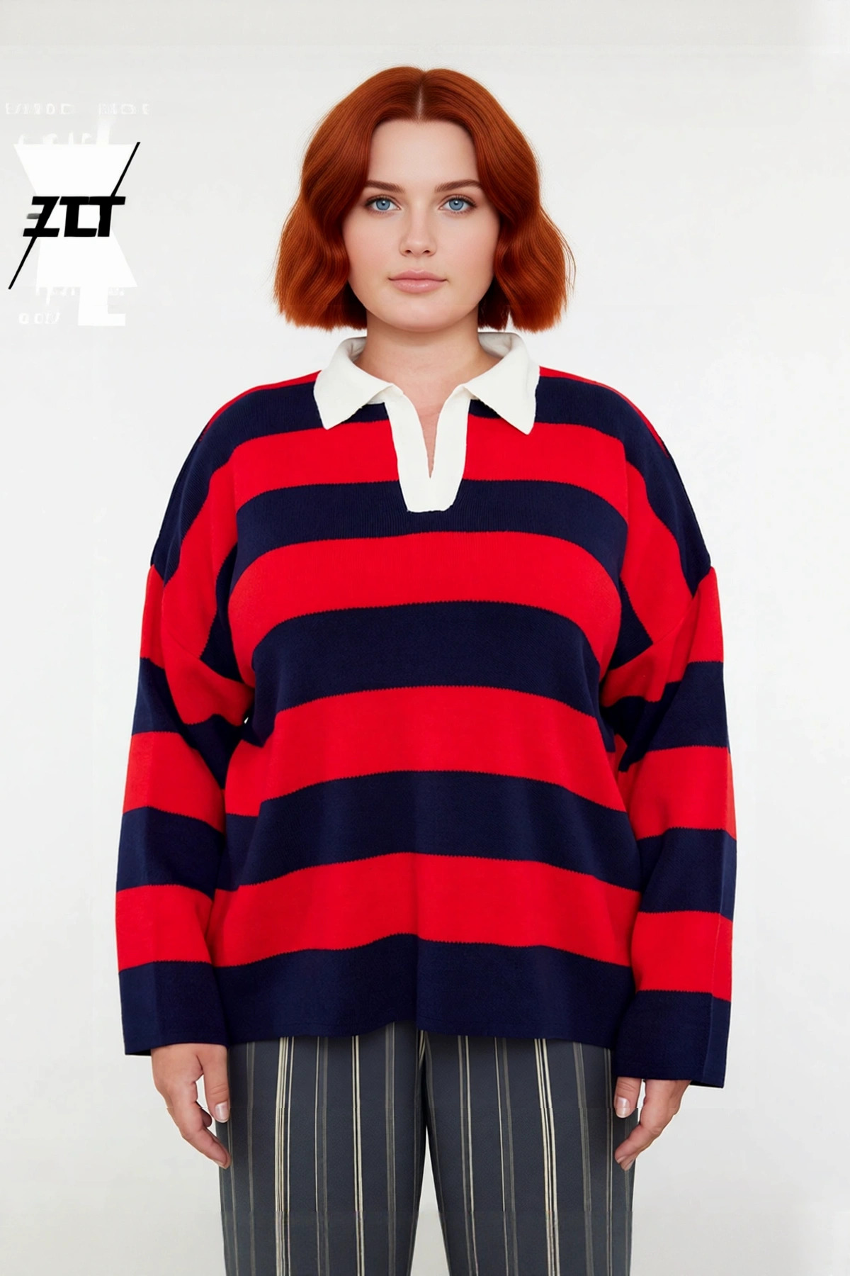 Ürün Özellikleri: Relaxed kalıp, akrilik materyal, çizgili desen, polo yaka, düşük kol, triko kumaş, çok renkli, baskısız tasarım.