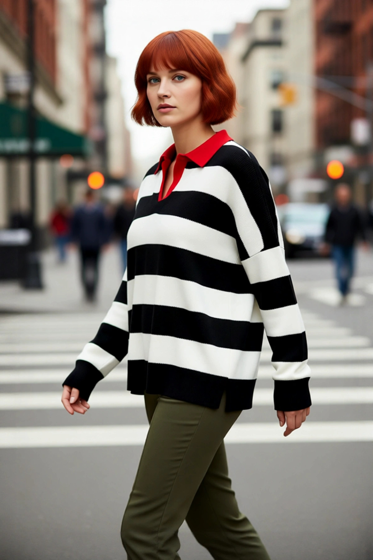 Bu Kadın Günlük Şık Polo Yaka Çizgili Triko Kazak, relaxed kalıbı sayesinde gün boyu süren konforu ve modern bir duruşu bir arada sunar. Yüksek kaliteli 100% akrilik materyali ile soğuk havalarda sizi sıcacık tutarken, yumuşacık dokusuyla cildinize nazikçe temas eder. Kırmızı ve lacivert tonlarındaki çarpıcı çizgili deseni, enerjik ve stil sahibi bir görünüm yaratır. Çok renkli yapısıyla gardırobunuzdaki birçok parça ile uyum sağlayarak zahmetsiz şıklık sunar. Baskısız ve sade tasarımı, desenin gücünü ön plana çıkararak zamansız bir estetik sunar.