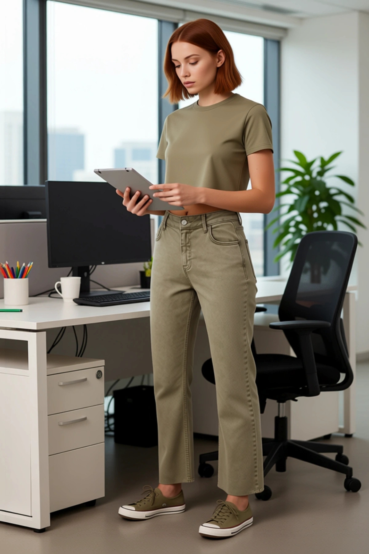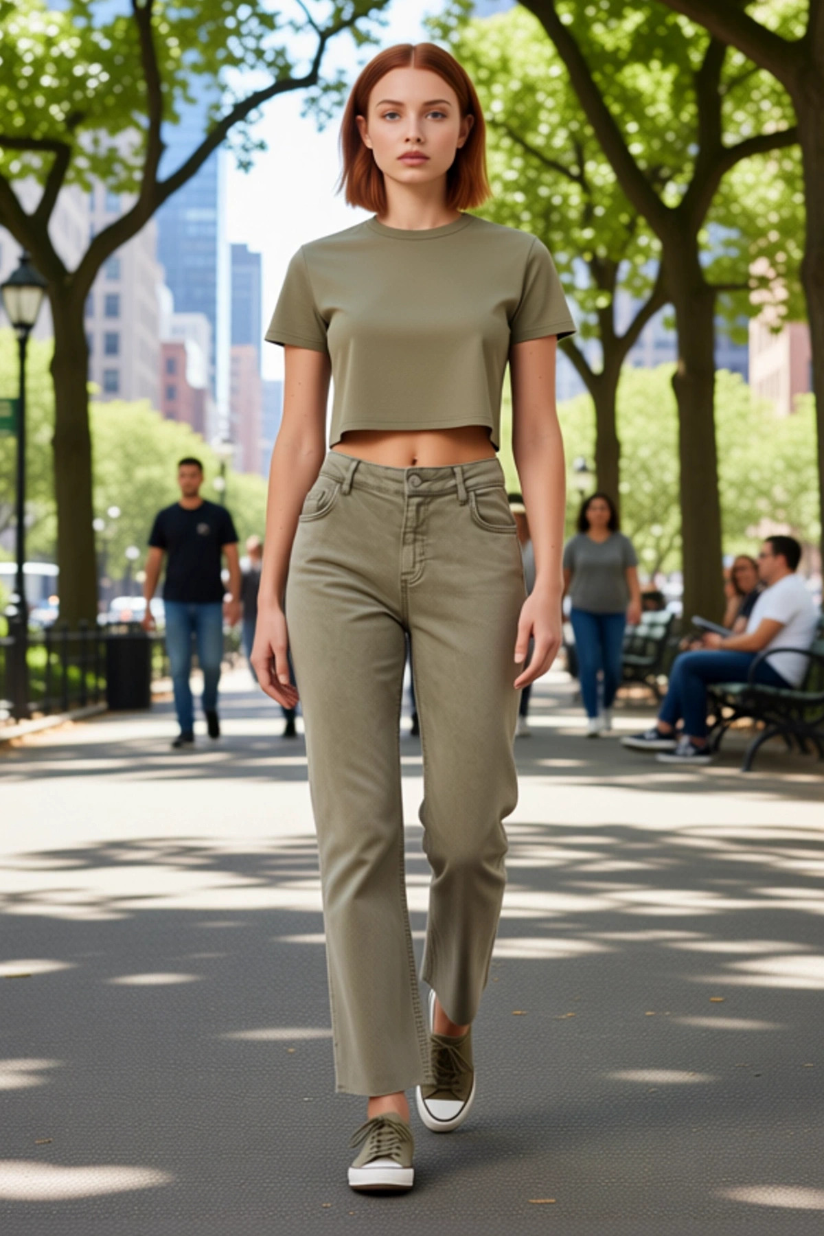 Bu şık ve rahat kadın denim pantolon, gardırobunuza modern bir dokunuş katacak. Yüksek bel tasarımı, vücut şeklinizi nazikçe vurgulayarak zarif bir silüet oluşturur. İspanyol paça kesimi, pantolona dinamik bir hareket ve sofistike bir görünüm kazandırır. Düz deseni ve zengin haki rengi, bu pantolonu çeşitli üst giyim parçalarıyla kolayca eşleştirmenizi sağlar. Comfort denim kumaşı, esnek yapısı sayesinde gün boyu üstün konfor sunar. %99 pamuk ve %1 elastan içeriği, hem dayanıklılığı hem de hareket özgürlüğünü garanti eder. Bu jean, günlük şıklık ve rahatlık arayan kadınlar için mükemmel bir seçenektir. Cool ve konforlu bir duruş sergileyen bu ürün, her kadının dolabında bulunması gereken bir parça olarak öne çıkar. Bu pantolonun en belirgin özellikleri, yüksek bel kesimi, genişleyen İspanyol paça detayı ve crop uzunluğudur. Yüksek bel, bel çizgisini belirginleştirerek daha uzun ve ince bir görünüm sağlar. Flare paça ise bacaklara doğru genişleyerek zarif bir akışkanlık yaratır ve retro bir hava katar. Crop boy, modern bir dokunuş sunarken, spor ayakkabı veya botlarla harika bir uyum yakalar. Comfort denim kumaşının esnekliği, gün içinde hareket ederken maksimum rahatlık sunar. Bu pantolon, hem şık görünmek hem de gün boyu rahat hissetmek isteyen kadınlar için idealdir. Casual ortamlar, hafta sonu aktiviteleri veya rahat bir ofis stili için rahatlıkla tercih edilebilir. Bu haki renkli flare paça jean pantolon, dört mevsim boyunca şık bir görünüm sunar. İlkbahar ve yaz aylarında, hafif bluzlar, tişörtler veya crop üstlerle kombinleyerek ferah bir stil oluşturabilirsiniz. Sonbahar ve kış aylarında ise kazaklar, hırkalar veya şık ceketlerle tamamlayarak katmanlı ve sıcak bir görünüm elde edebilirsiniz. Bu pantolonu, beyaz spor ayakkabılar, şık botlar veya zarif sandaletlerle kombinleyebilirsiniz. Kombin önerisi olarak, üzerine basic bir beyaz tişört ve üzerine denim bir ceket giyerek rahat bir günlük stil yaratabilirsiniz. Daha şık bir görünüm için, üzerine saten bir bluz ve topuklu ayakkabılarla tamamlayabilirsiniz. Bakımı kolaydır ve uzun yıllar boyunca ilk günkü gibi kalır.