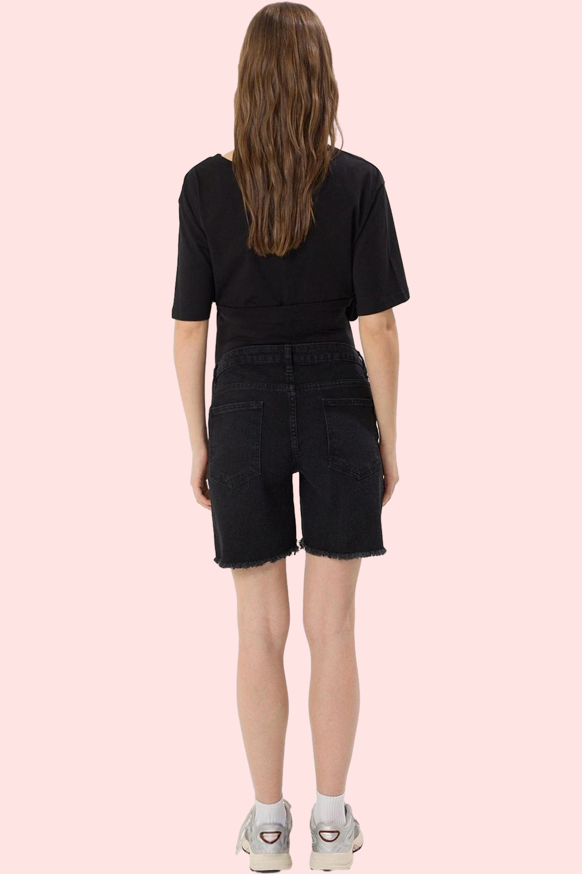 Bu hamile denim şort ile hamileliğiniz boyunca rahatlığı ve şıklığı bir arada yaşayın! Yüksek bel tasarımı, karnınızı rahatça desteklerken, straight silueti her vücut tipine mükemmel uyum sağlar. Siyah rengi ile her kombininize kolayca uyum sağlar. %99 pamuk ve %1 elastan karışımı, yumuşak ve nefes alabilir bir yapıya sahiptir, gün boyu konforlu hissetmenizi sağlar. Regular boy kesimi, hareket özgürlüğünüzü kısıtlamaz. Pratik yıkama talimatları ile bakımı son derece kolaydır. Pamuklu dokusu sayesinde cildinize yumuşak ve nazik davranır, hassas cildiniz için mükemmel bir seçimdir. Türkiye menşeli kaliteli kumaşı ile uzun yıllar kullanabilirsiniz. Bu şık ve rahat şortu, sevdiğiniz tişörtler, bluzlar ve gömleklerle kombinleyerek tarzınızı yansıtabilirsiniz. Gündelik yaşamınızda, alışverişlerinizde veya arkadaşlarınızla buluşmalarınızda şık ve rahat hissetmek için idealdir.