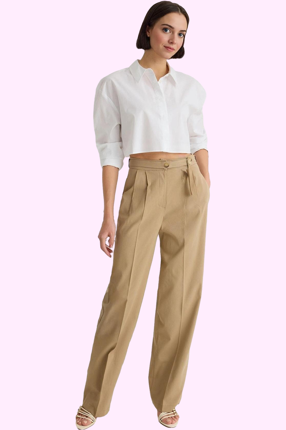 Kadın Kemerli Geniş Paça Dokuma Pantolon Fonksiyonel Dayanıklı Kaliteli Konforlu Estetik Şık