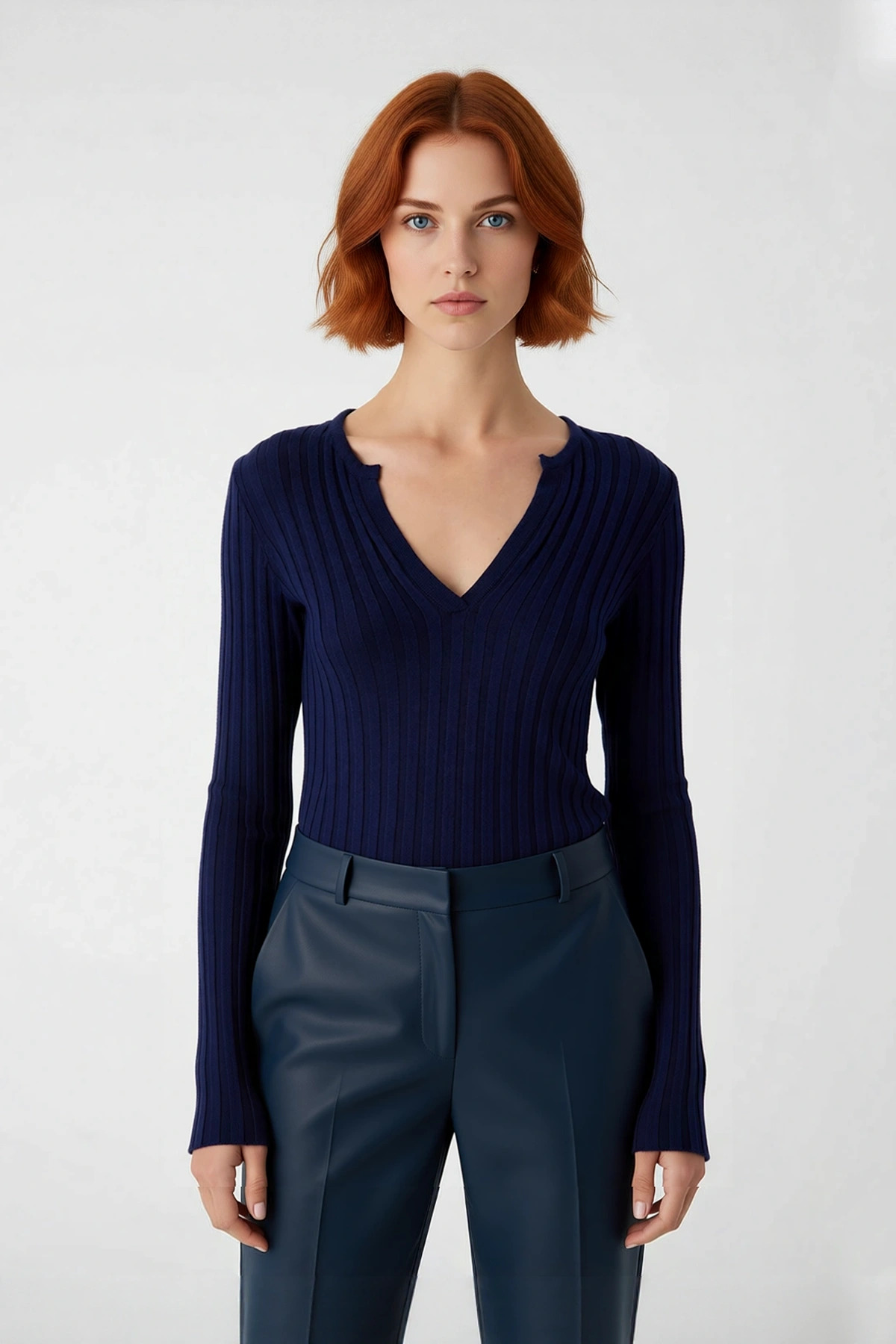 Kadın İnce Triko Kaçık V Yaka Fitilli Fitted Kazak Modeli Günlük Rahat Ve Modern Kombinler İçin