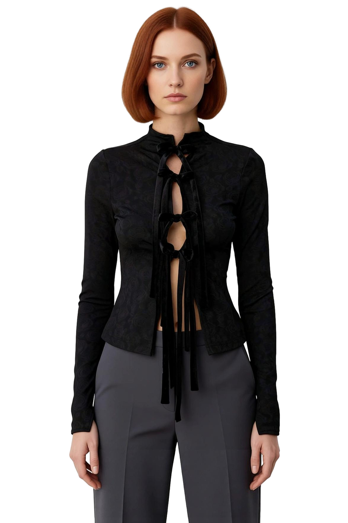 Modern kadının stilini yansıtan bu özel tasarım üst, gardırobunuzun en dikkat çekici parçalarından biri olmaya aday. Hakim yaka detayı, klasik bir zarafet sunarken, uzun kollu yapısı her mevsim için ideal bir kullanım imkanı tanır. Ürünün en çarpıcı özelliklerinden biri, ön kısmında yer alan zarif bağcık detayıdır. Bu bağcıklar, sadece estetik bir dokunuş katmakla kalmaz, aynı zamanda istenilen sıkılıkta ayarlanabilir bir uyum sağlayarak kişiye özel bir konfor sunar. Jakar dokuma tekniği ile üretilmiş olan kumaş, kendine has desenleriyle ürüne sofistike bir görünüm kazandırır. Bu desenler, ışığı farklı açılarda yansıtarak dinamik ve göz alıcı bir etki yaratır. Üstün kalıbı, vücudu saran (fitted) bir tasarıma sahiptir. Bu sayede, vücut hatlarını zarifçe vurgular ve modern bir silüet oluşturur. Örme kumaşın sunduğu esneklik, gün boyu maksimum konfor sağlarken, hareket kabiliyetini de kısıtlamaz. Yüksek kaliteli polyester ve elastan karışımı, ürünün hem dayanıklı olmasını hem de formunu uzun süre korumasını sağlar. Bu üst, hem özel günlerinizde hem de günlük hayatınızda şıklığınızı tamamlamak için mükemmel bir seçenektir. Bir gece davetinde şık bir pantolon veya etekle, hafta sonu ise daha rahat bir görünüm için jean’lerle kombinleyebilirsiniz. Türkiye’de üretilmiş olan bu ürün, titiz işçilik ve yüksek kalite standartlarını temsil eder. Genç ve stil sahibi bireyler düşünülerek tasarlanmış olup, her sezon gardırobunuzda yerini alabilecek zamansız bir parçadır. Ürünün bakımı Hassas Yıkama yıkama talimatına uygun olarak kolayca yapılabilir. Bu üst, rahatlığı ve şıklığı bir arada arayan kadınlar için ideal bir tercihtir. Kendine özgü tasarımı ve kaliteli materyalleri ile fark yaratmanızı sağlar. Kumaşın dokusu, cilde nazikçe temas eder ve gün boyu ferah bir his verir. Bu üst ile girdiğiniz her ortamda stil sahibi duruşunuzla dikkat çekeceksiniz.