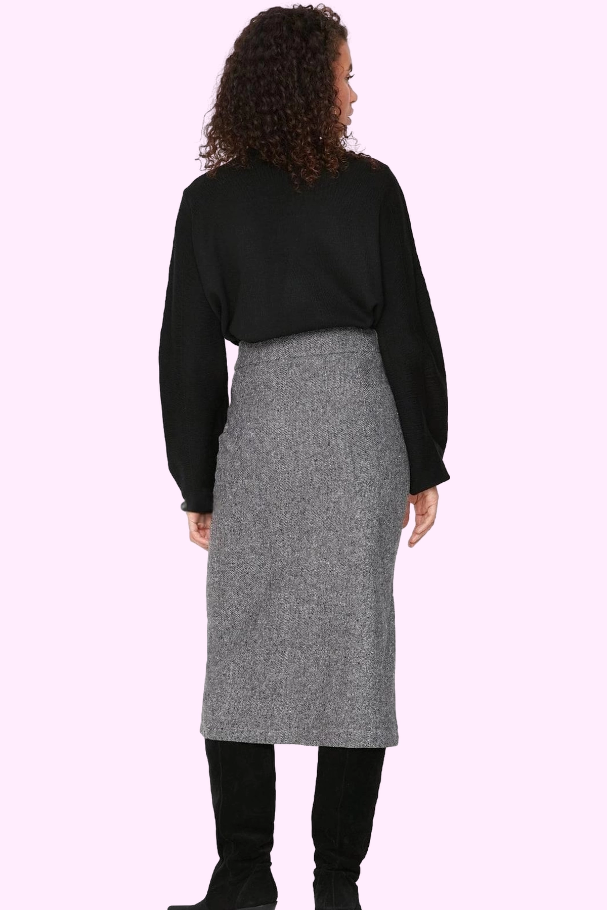 Materyal Bileşeni: 43% Polyester, 27% Pamuk, 17% Akrilik, 13% Viskoz; Desen: Balık sırtı; Kalıp: Kalem; Kumaş Tipi: Dokuma; Renk: Gri; Ürün Tipi: Düz; Ürün Detayı: Kemerli; Astar Durumu: Astarsız; Boy: Midi; Siluet: Kalem; Ortam: Casual/Günlük; Ek Özellik: Ek Özellik Mevcut Değil; Dokuma Tipi: Kaşe; Persona: Cool & Comfort; Sürdürülebilirlik Detayı: Hayır; Kemer/Kuşak Durumu: Kemerli; Bel: Normal Bel; Yıkama Talimatı: T10; Sezon: Kış; Menşei: TR; Paket İçeriği: Tekli
