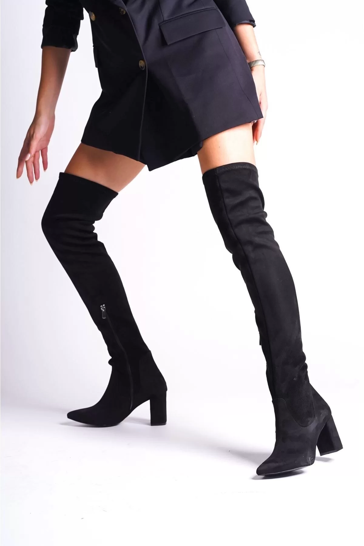 Modern kadının gündelik stiline zarif bir dokunuş katan bu diz üstü çizme sade hatları ve kalın topuğuyla hem rahat hem stil sahibi bir duruş sunar Günlük kombinlerde rahatlıkla tercih edilebilirken özel günlerde de iddialı bir tamamlayıcı olur Klasik çizgilerle zamansız şıklık sunmak isteyenler için ideal