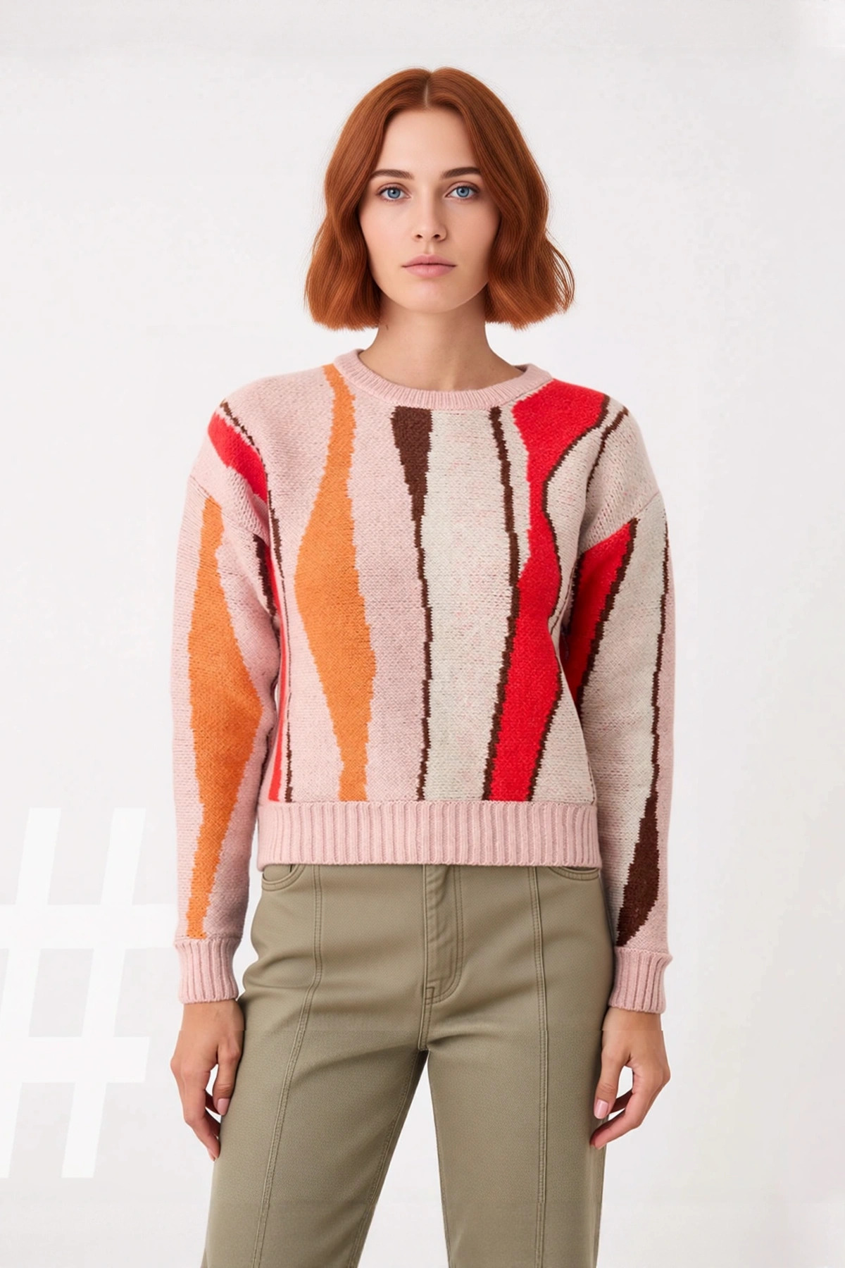 Bu kadın kalın triko kazak, kış gardırobunuzun en şık ve konforlu parçalarından biri olmaya adaydır. Regular kesimi ile vücuda ideal bir şekilde oturur ve gün boyu rahatlık sunar. Göz alıcı renk bloklu deseni, pembe tonlarının yanı sıra turuncu, kırmızı ve kahverengi gibi canlı renklerle hareketlenerek modern ve enerjik bir hava katar. %80 akrilik ve %20 polyesterden oluşan yumuşak materyal bileşimi sayesinde cildinize dost bir dokunuş hissi verirken, soğuk havalarda üst düzey sıcaklık sağlar. Casual ve günlük kullanıma uygun yapısıyla tarzınızı tamamlar.
