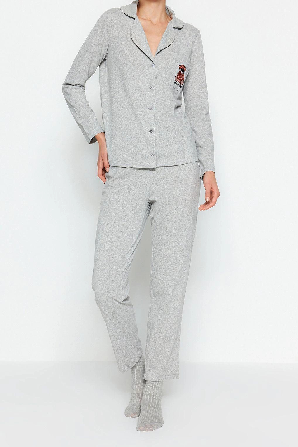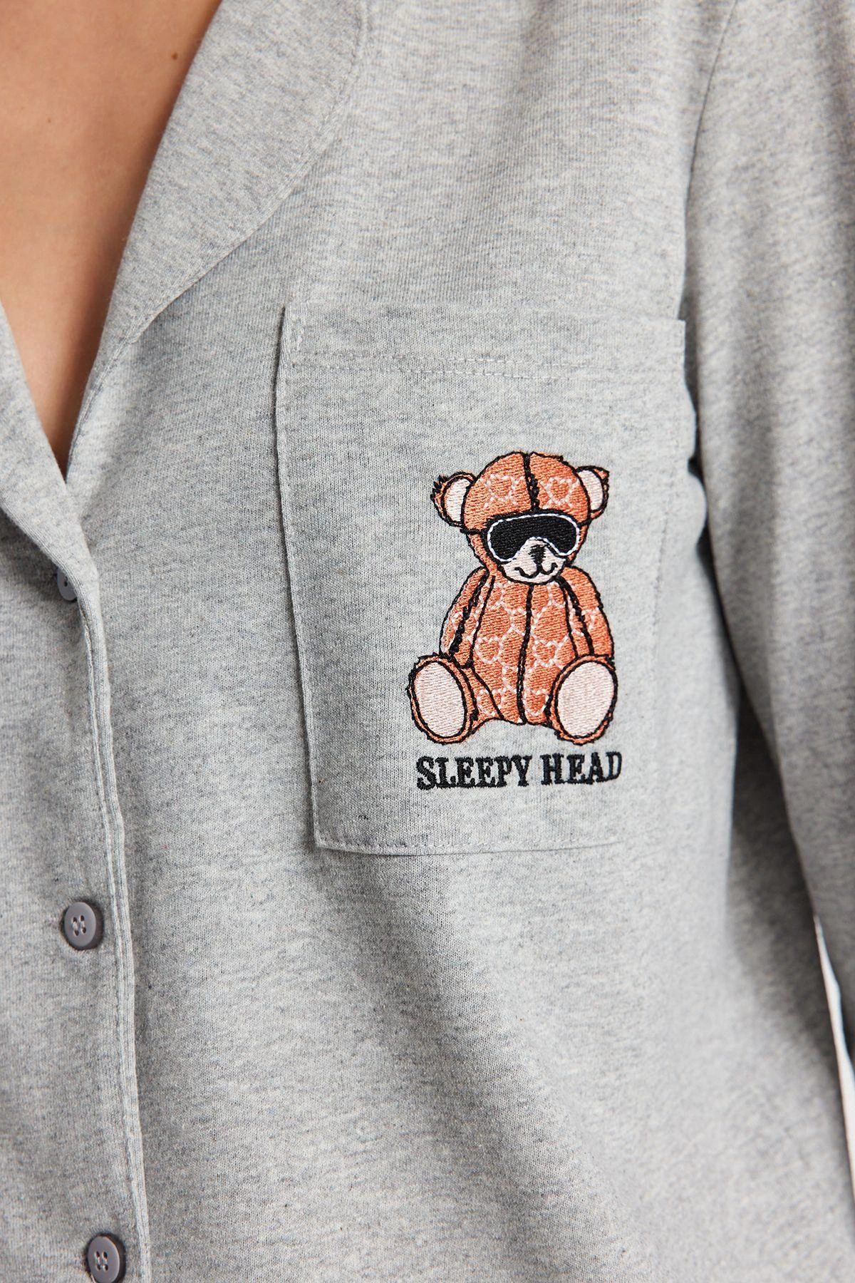 Kadın Ayıcık Baskılı Gömlek ve Pantolon Pijama Seti Fonksiyonel Dayanıklı Kaliteli Estetik