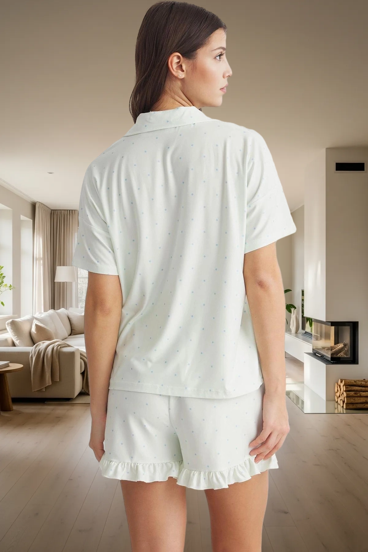 Kadın Kalpli Baskılı Pijama Takımı Gömlek Şort Fonksiyonel Dayanıklı Kaliteli Konforlu Şık